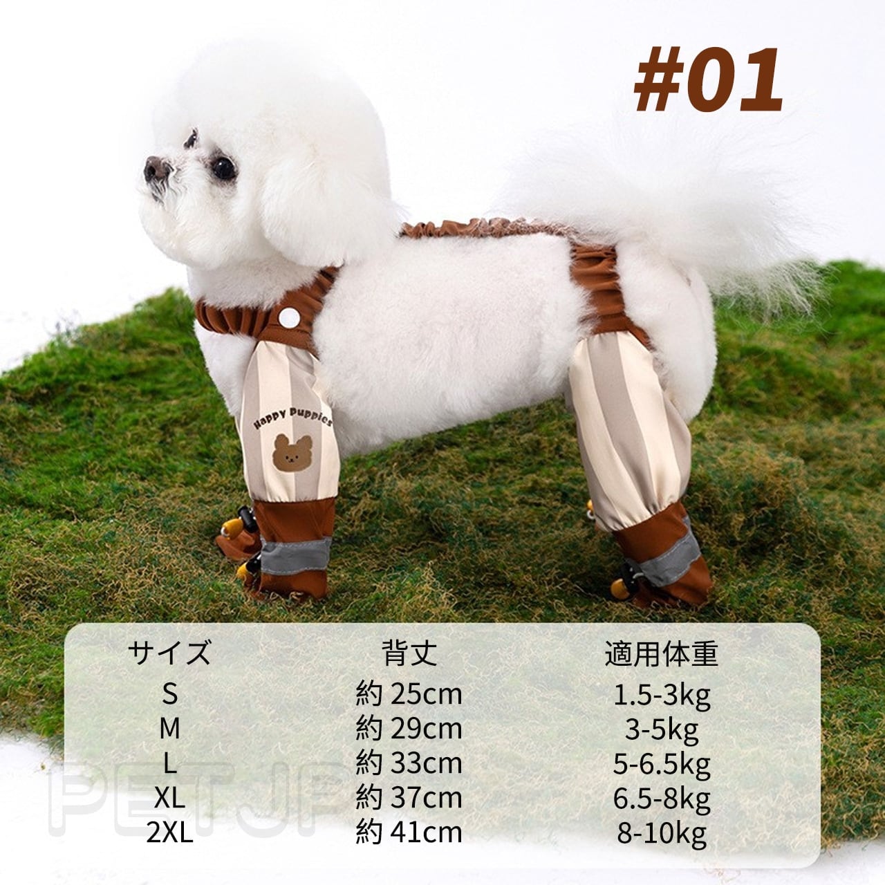シンプルでありながら機能性に優れたデザインは、小型犬(テディバーニーやビードルなど)に最適です。サイズも選びやすく、愛犬にぴったりフィットします。これで、急な雨や泥道でも安心してお散歩が楽しめることでしょう!