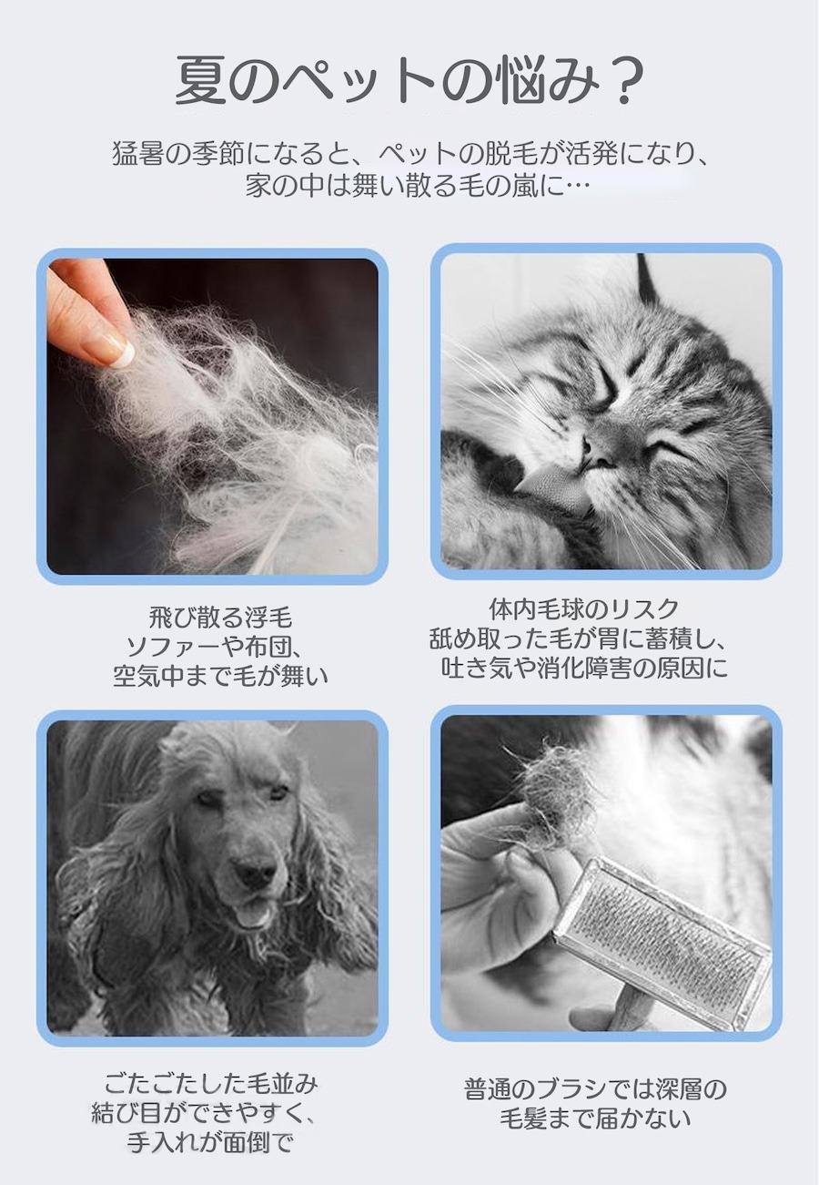ペット用毛髪ケアカッター」で、愛するペットの毛のお手入れがもっとスムーズになります!この毛髪ケアカッターは、浮毛や打薄(うす毛)を効果的に除去し、結び毛をスッキリ解消するために設計されています。