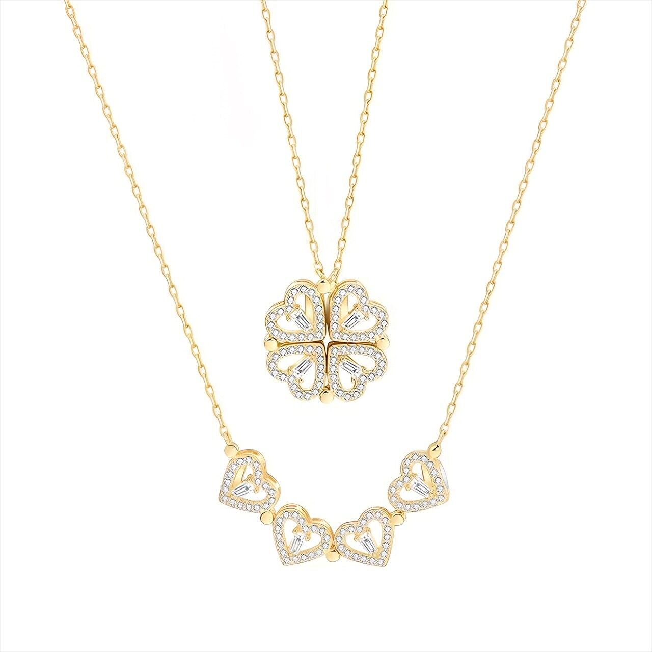 ● 【幸運を呼ぶデザイン】四つ葉のクローバーをモチーフにしたこのネックレスは、あなたの日常にさりげない幸運をもたらします。美しいハート型にデザインされたネックレスは、身に着けるだけで心が晴れやかになることでしょう。人工ジルコニウムの装飾が上品な輝きを放ち、どんなシーンにもぴったりとマッチします。特別な日にも、カジュアルなコーディネートにも活用できるアイテムです。