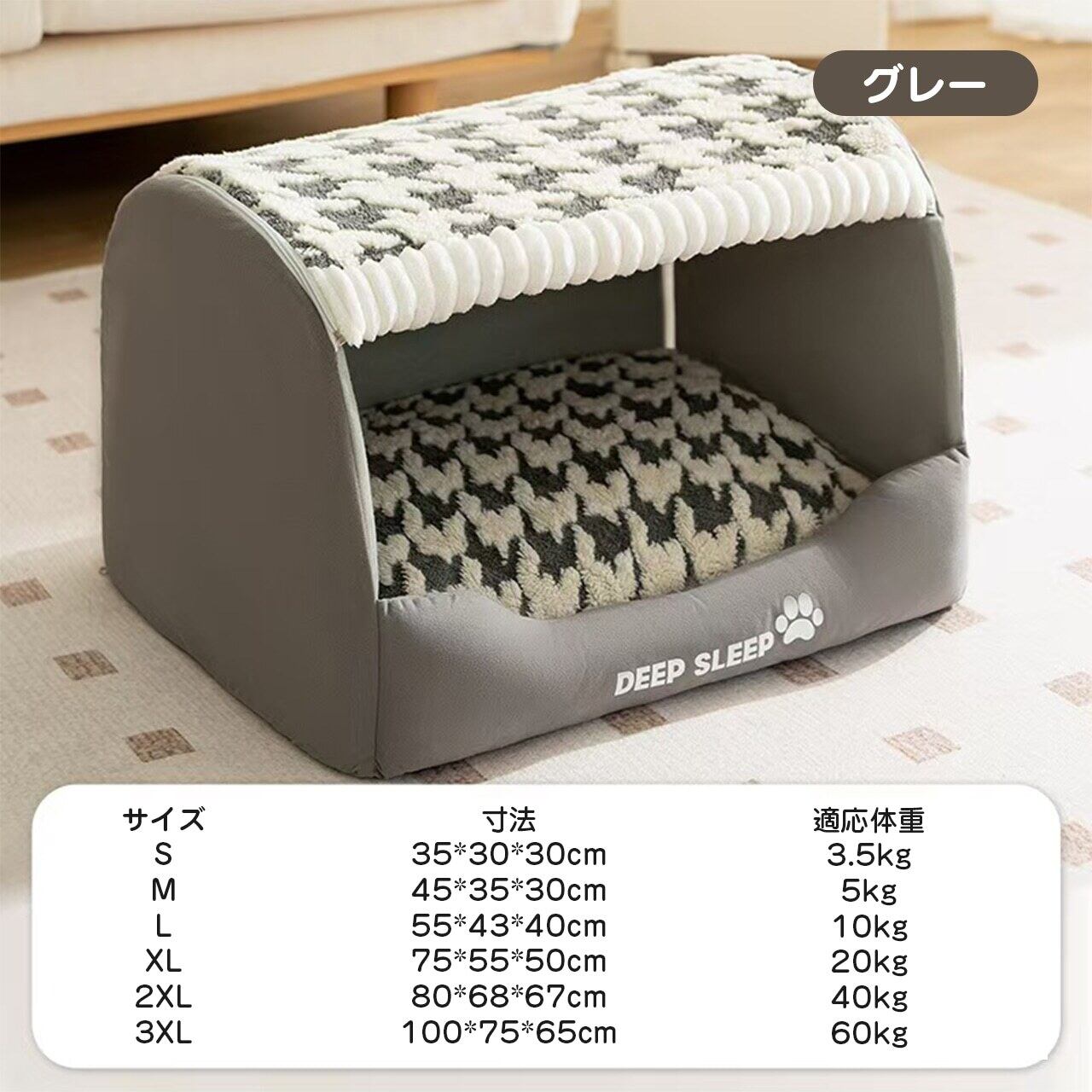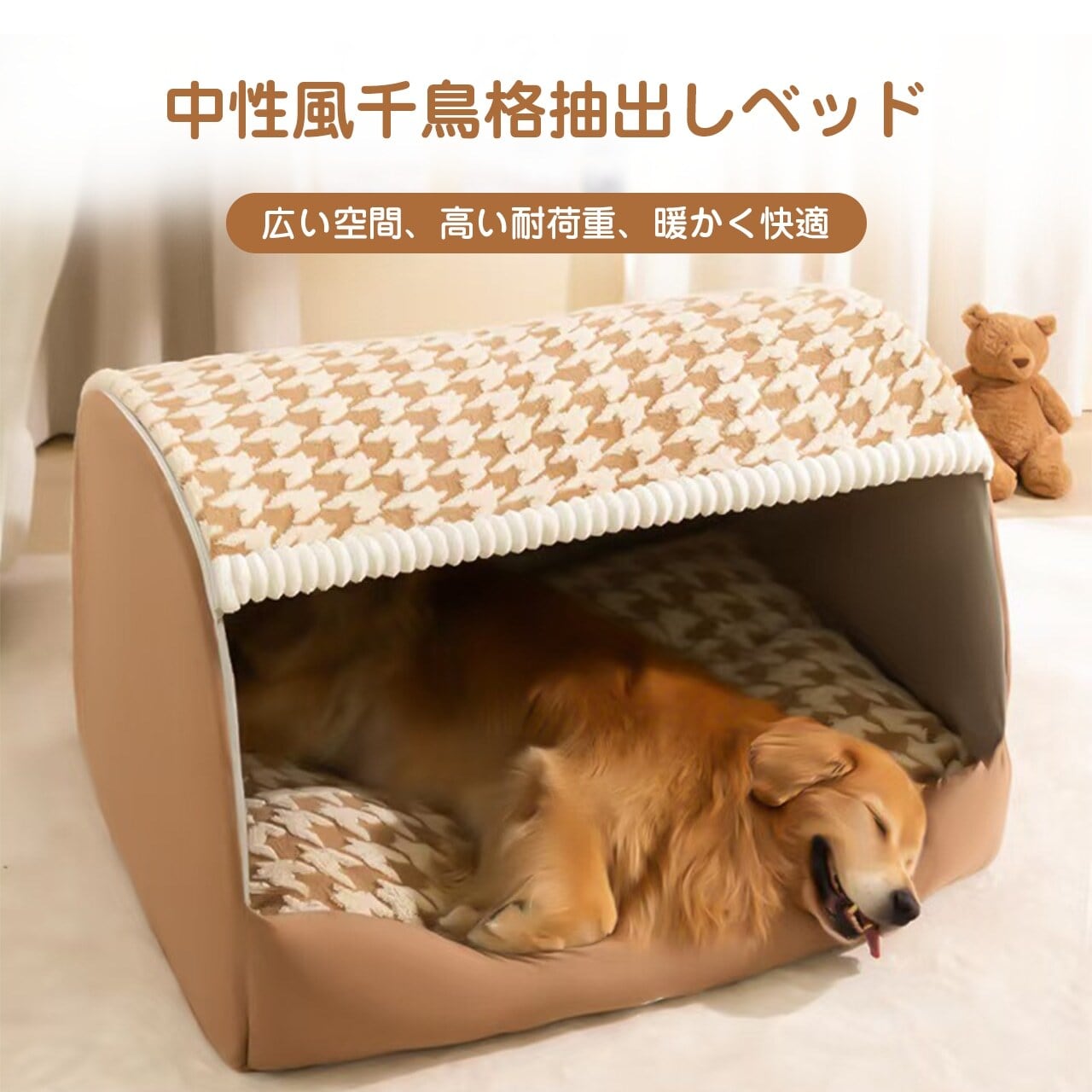46.ペットドッグハウス 小型犬・大型犬対応 秋冬用|千鳥格 抽出し式封閉型