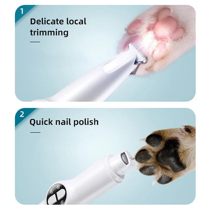 →ペット用剃毛&爪研磨2in1トリミング器:19mm広刃ヘッド+3段階の爪研磨モード、LEDライトで精密操作。自宅でのケアが、安心で快適なひとときに変わります