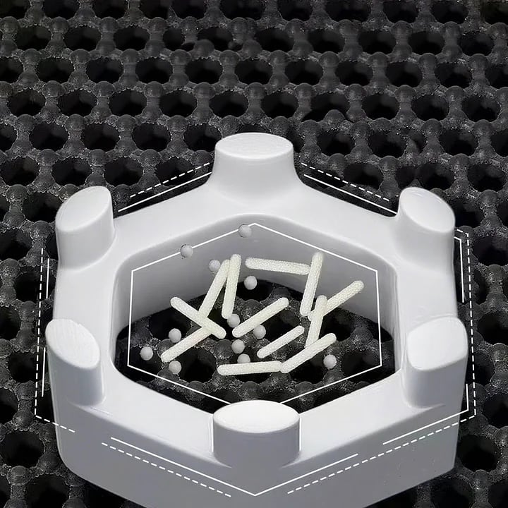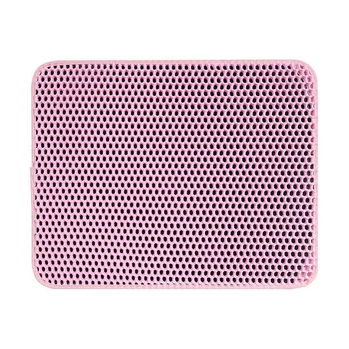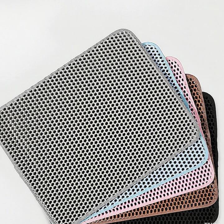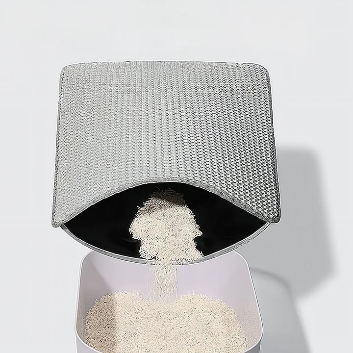 →二層構造キャットトイレマット:六角形メッシュ+集砂ポケットで90%以上の飛び散りをブロック!砂はマットに収まり、床はいつも清潔