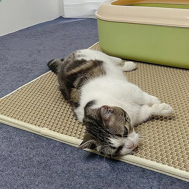・マットの縁は高く設計されており、猫砂の飛び散りを徹底的に防止。清潔な環境を保つための強力な味方です。
