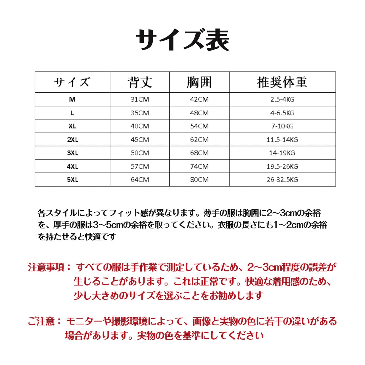 ■ サイズ:M(4KG以内)、L(6KG以内)、XL(10KG以内)、2XL(13.5KG以内)、3XL(19KG以内)、4XL(25KG以内)、5XL(32KG以内)