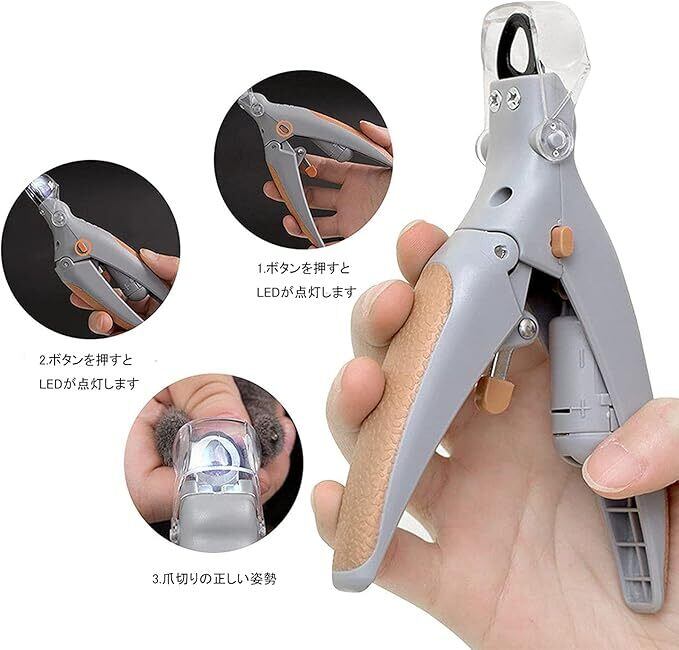 1. 【安全安心設計】LEDライト付きのこの爪切りは、ペットの爪の中にある血管をしっかり照らし、安全に爪を切ることができます。初めての方でも安心して使用できます!