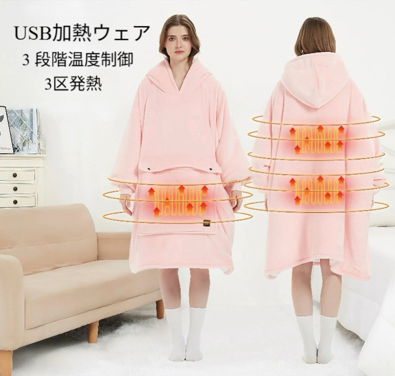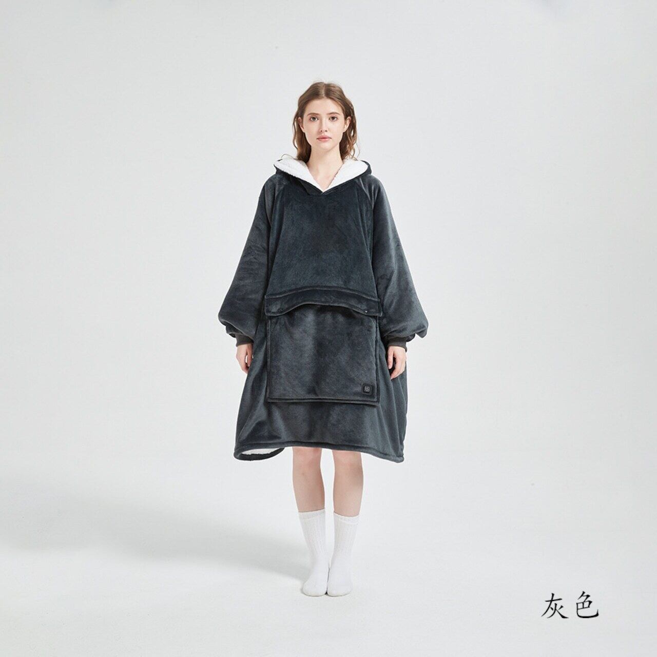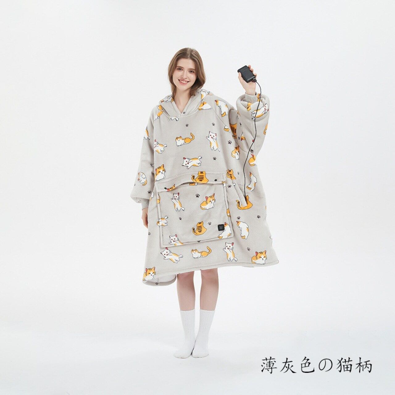 商品名:USB加熱セーター、フード付きの楽ちんブランケット、フランネル二重織、厚手のカップル用楽ちんパジャマ