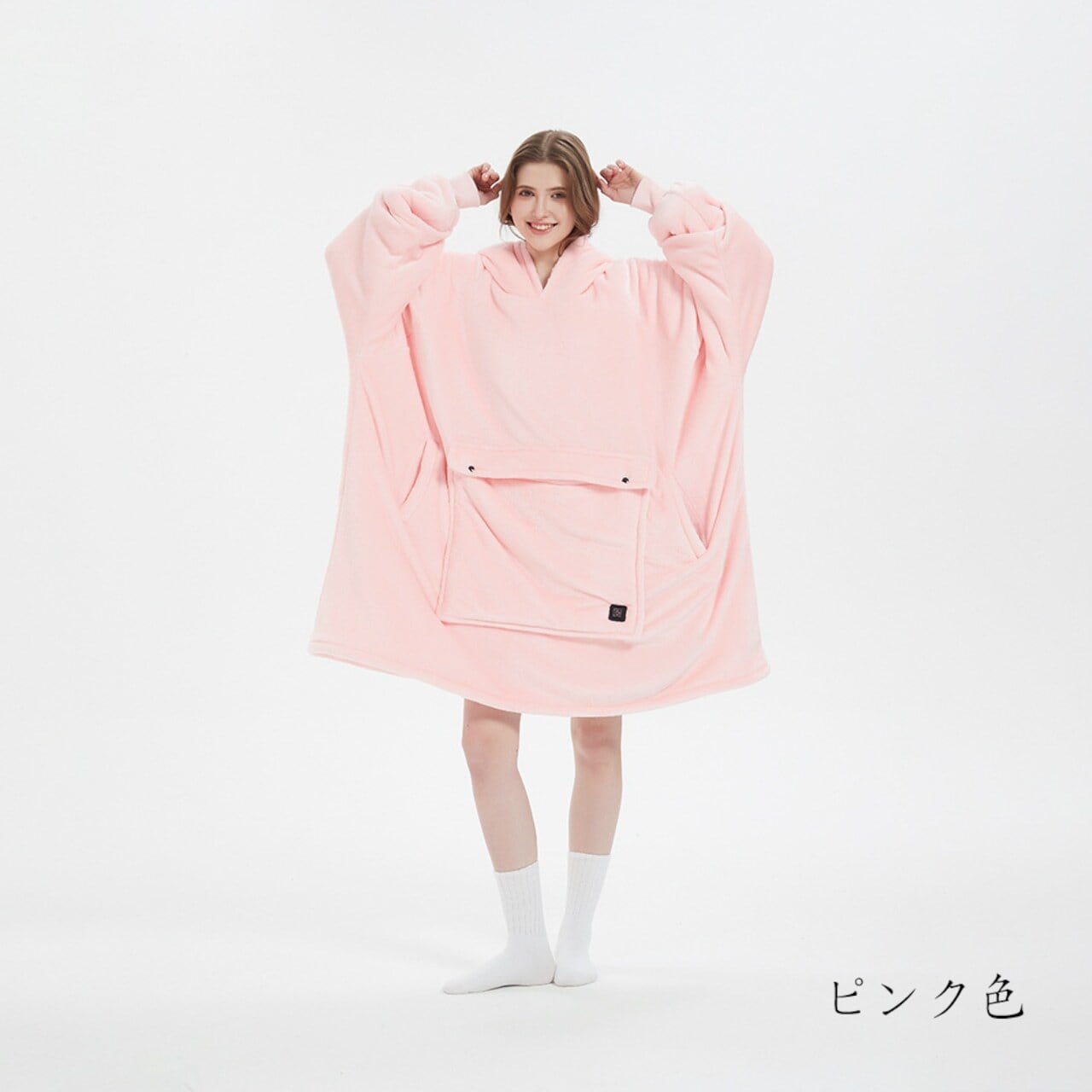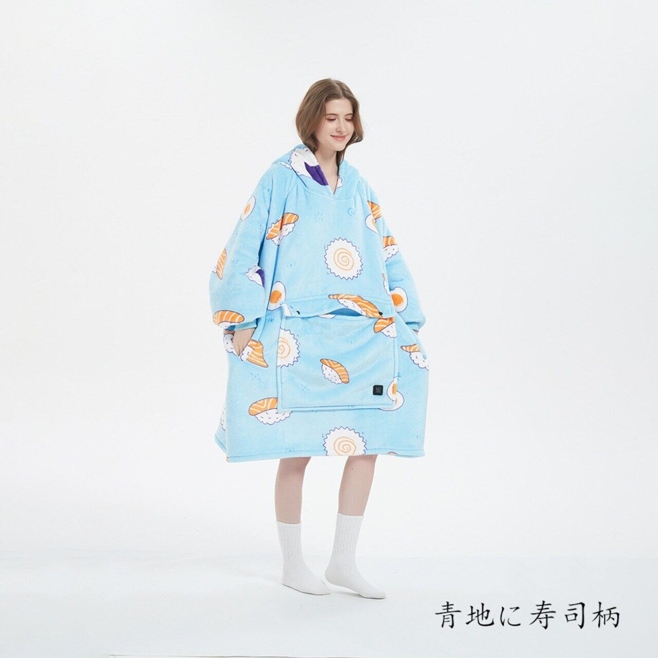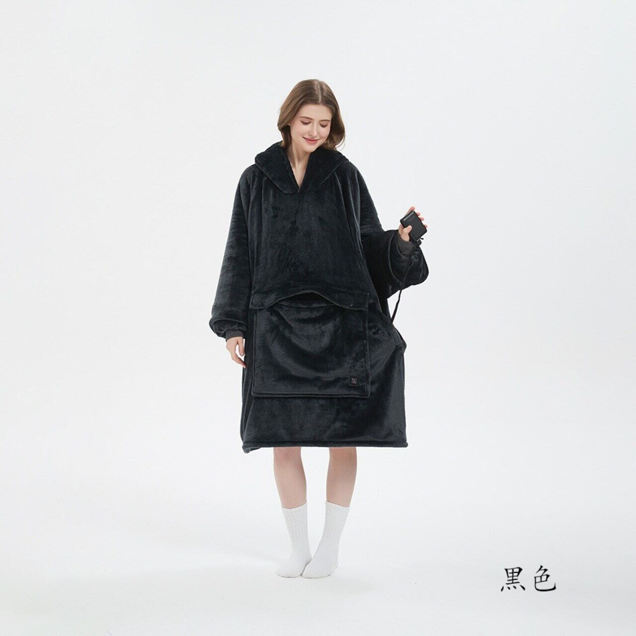 商品名:USB加熱セーター、フード付きの楽ちんブランケット、フランネル二重織、厚手のカップル用楽ちんパジャマ