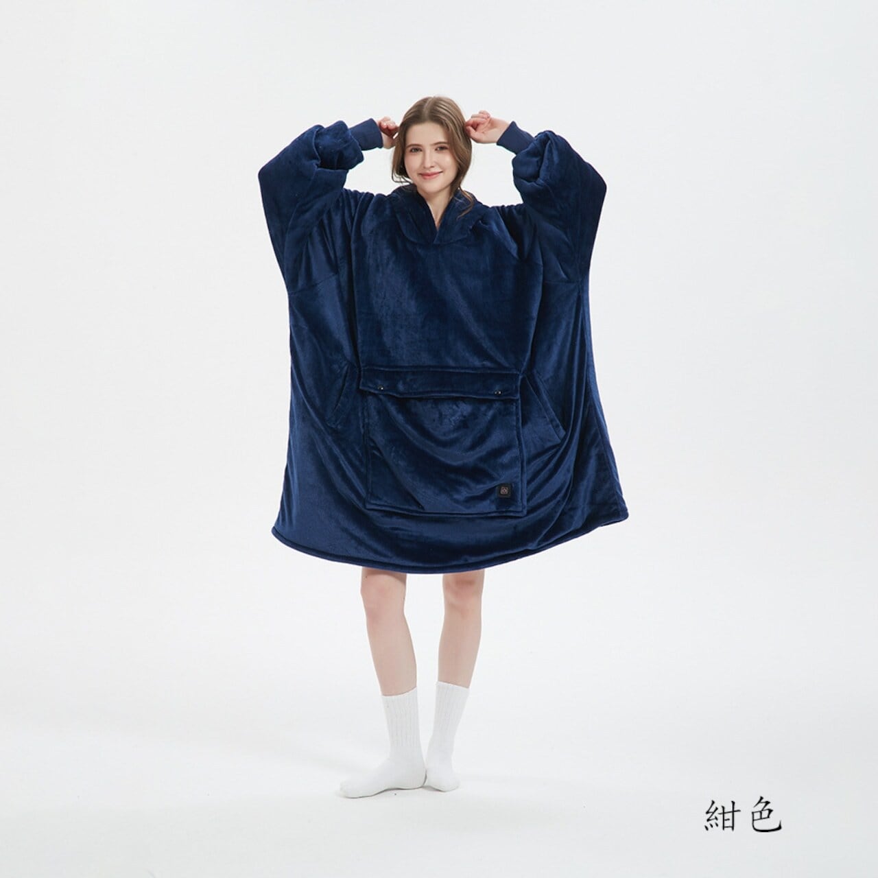 セーターとブランケットを巧妙に組み合わせ、セーターとして着用することも、ブランケットとして展開することもでき、一物多用で、便利で実用的です。