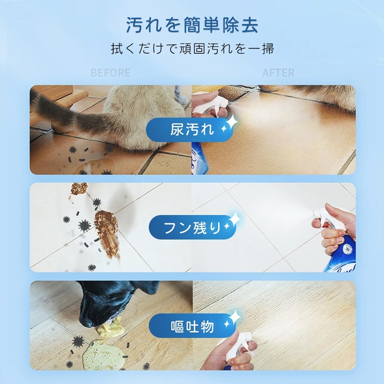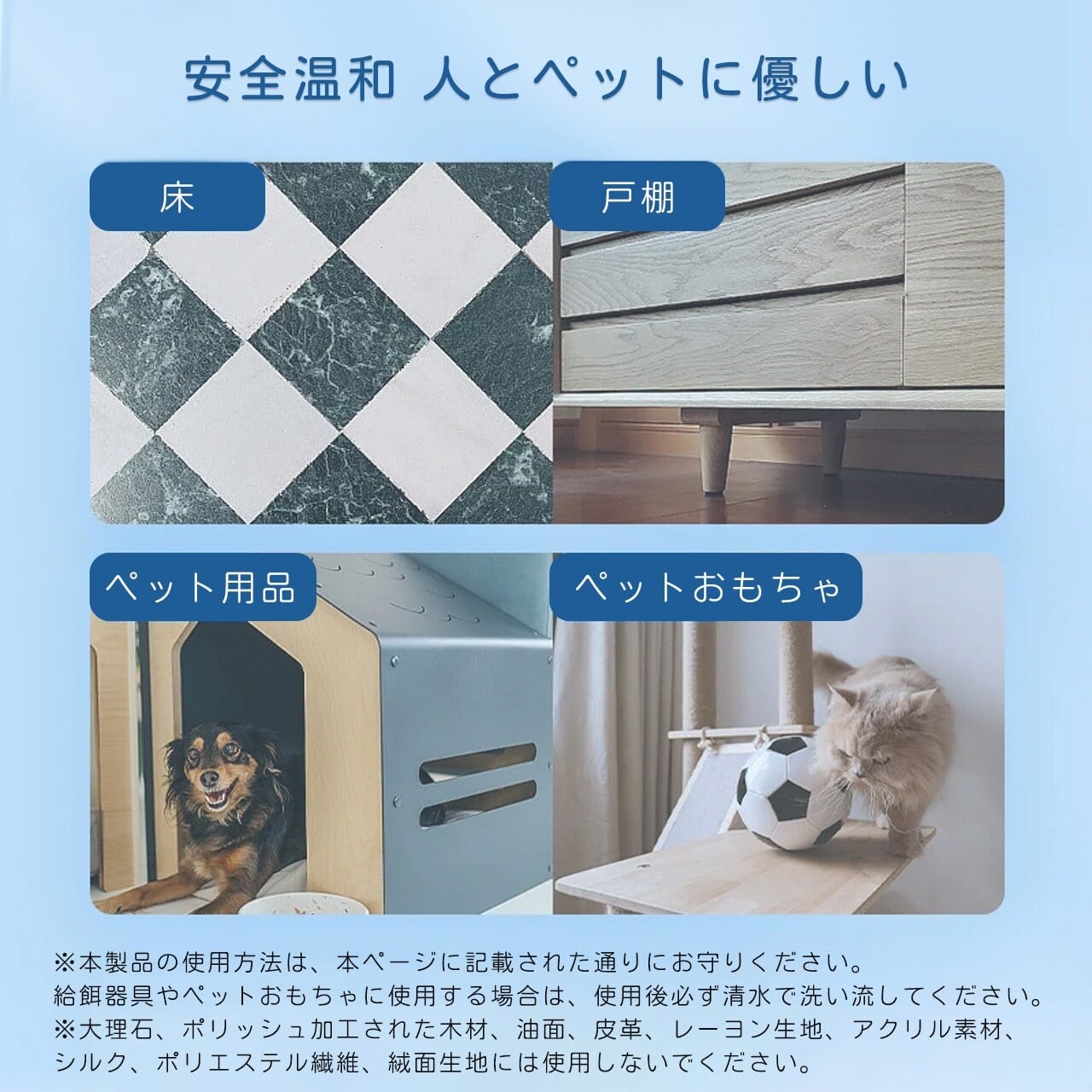 ペットの健康を第一に考えた天然成分を使用しており、化学薬品を含まないため、万が一舐めてしまっても安心です。環境にも優しく、心配なくお使いいただけます。