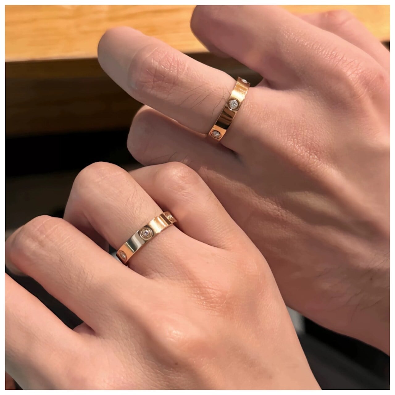 このリングは、色褪せしにくいチタンスチールを使用しているため、長時間にわたり美しい状態を保ちます。大切な瞬間を共にするシンボルとして、いつまでも変わらぬ輝きを届けます。