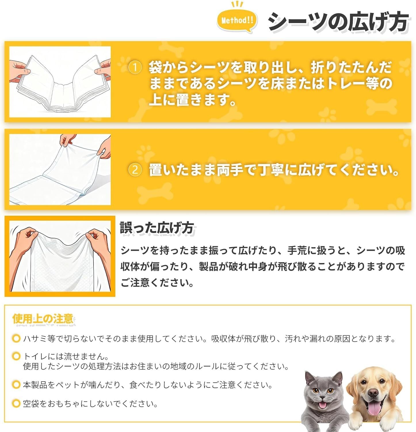 瞬間ロック機能が備わっており、液体を素早く吸収し、漏れを防ぎます。新しいシーツに交換する手間を減らし、お手入れの手間を軽減。ペットが安心して使えるように設計されています。