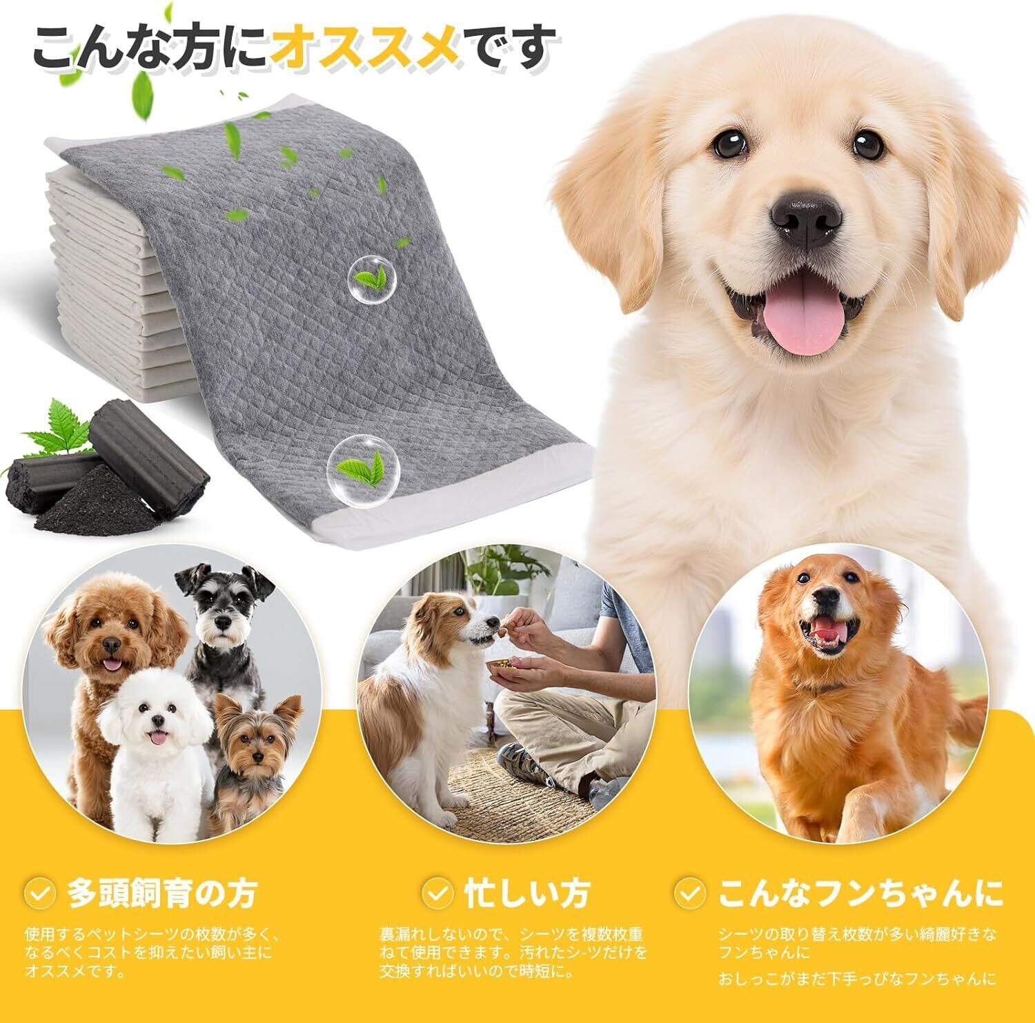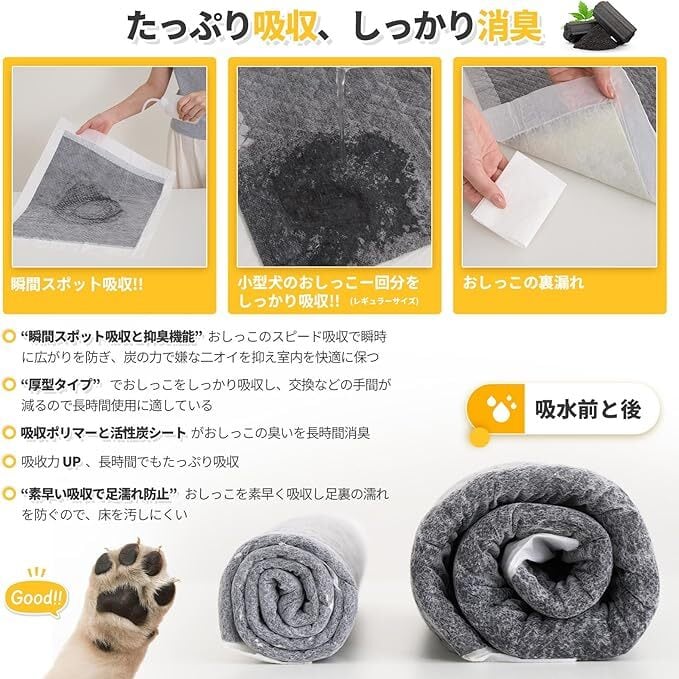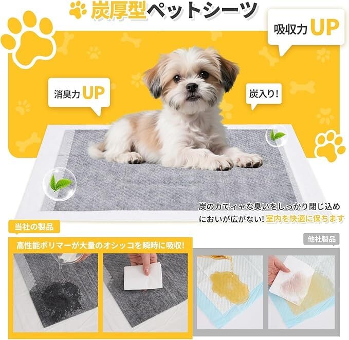この活性炭入りペットシーツは、ペットの健康と快適さを考えた必須アイテムです。大切な家族としてのペットに、いつでも清潔で快適な環境を提供するための一歩を踏み出しましょう!