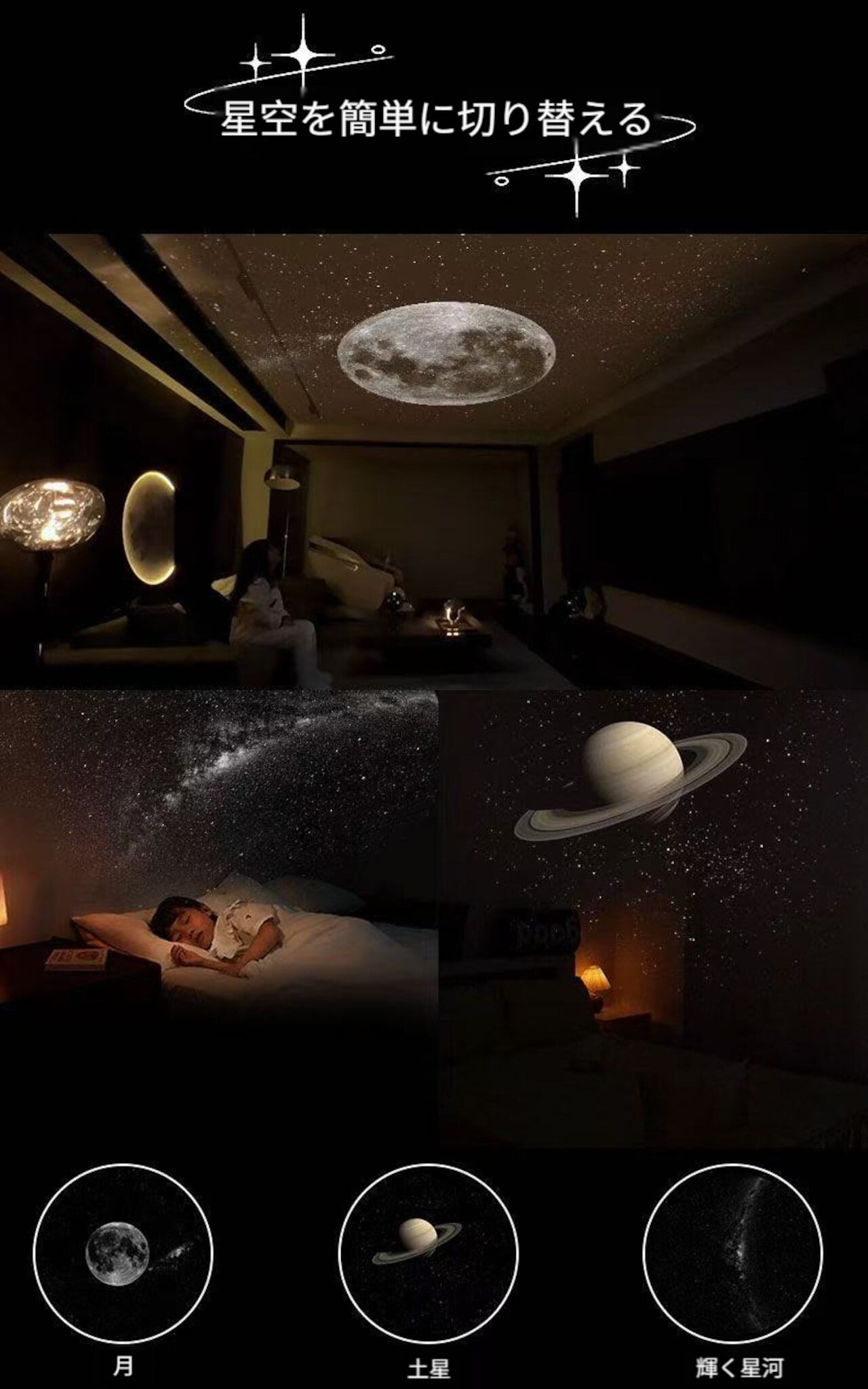 ■ おしゃれな星空演出で癒しの空間を!