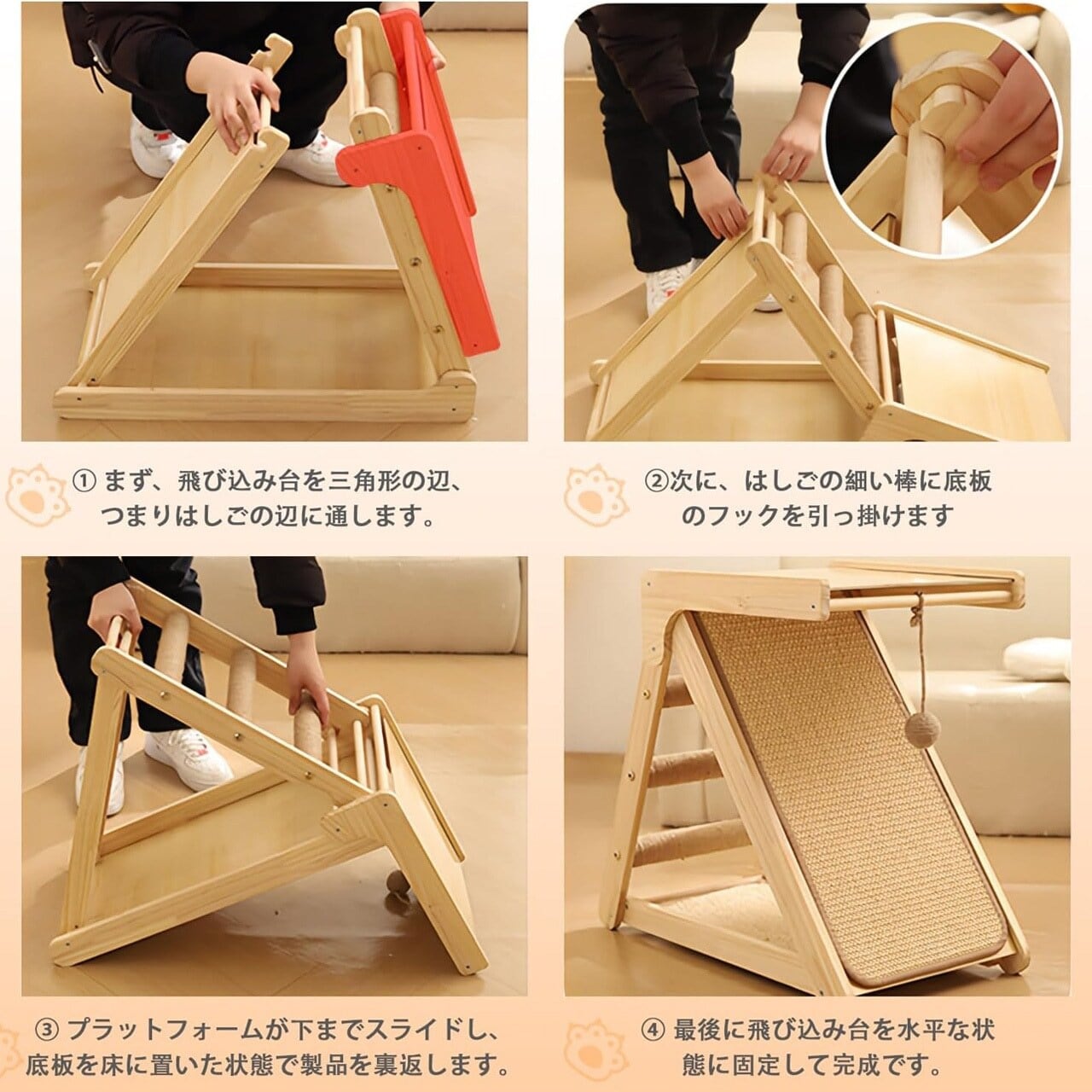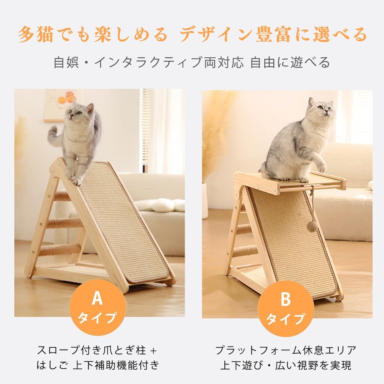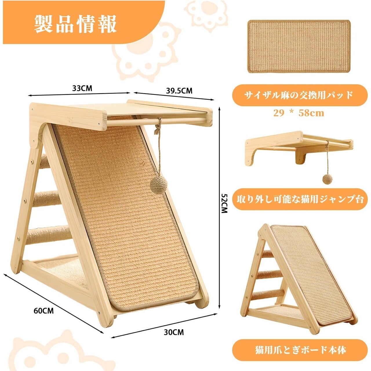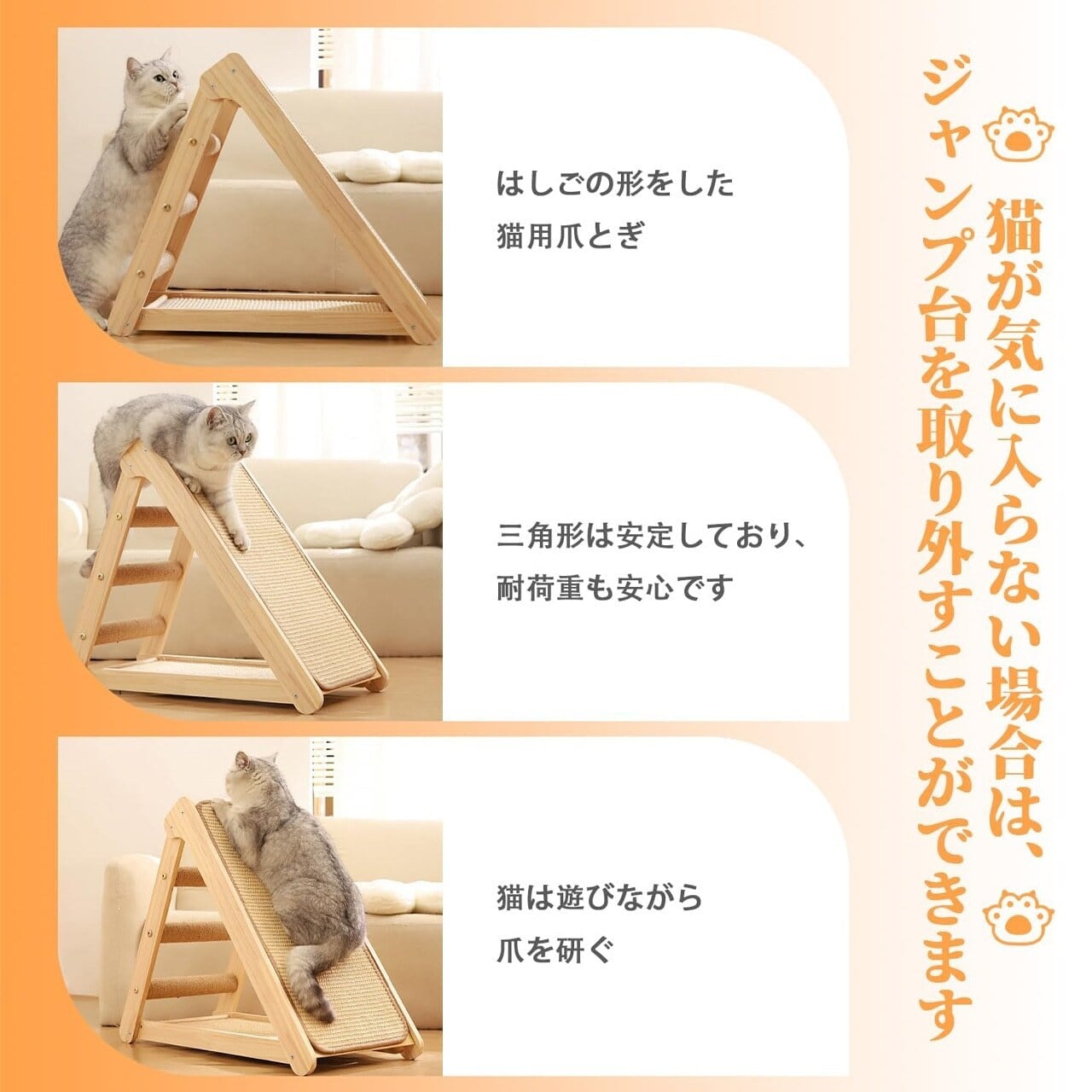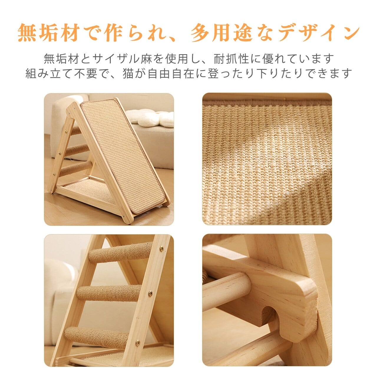 ■ 特徴:丈夫な実木製、猫つめとぎ機能、コンパクト設計、ジュートマット付き