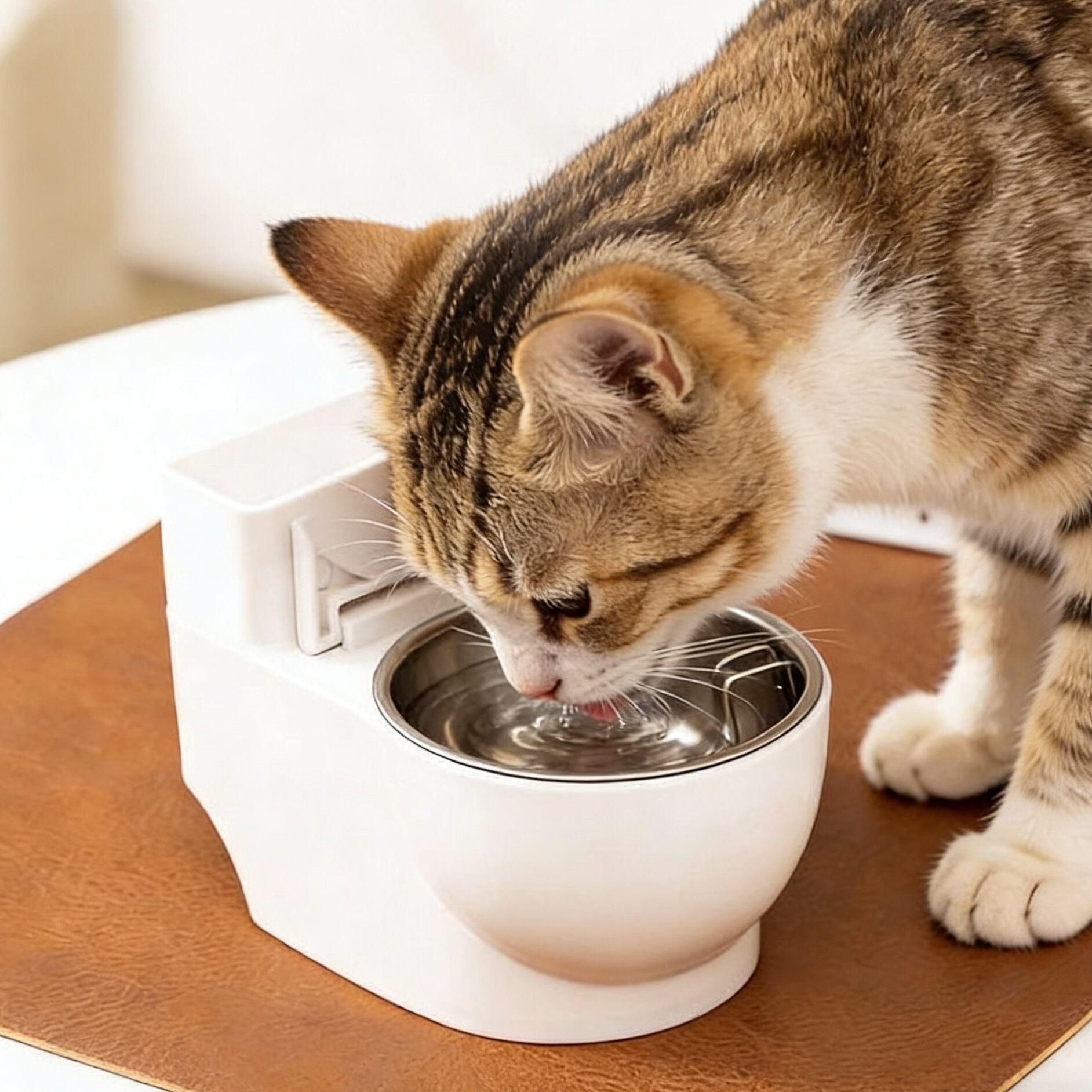 水分補給は猫ちゃんの健康に不可欠です。このミニトイレ型給水ボウルを使うことで、楽しく水分を摂取できる環境を整え、元気で健康な生活をサポートします。可愛い姿で水を飲む猫ちゃんを見て、飼い主様も癒されること間違いありません!