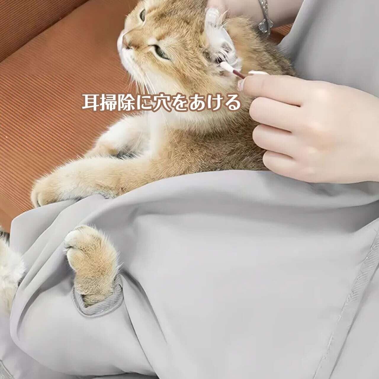 この猫爪切り専用エプロンは、愛猫の爪を切る際の手間を軽減するために特別にデザインされています。穴あきデザインが施されており、猫ちゃんをしっかりとキャッチしつつ、しっかりとしたサポートで爪切りがスムーズに行えます。冬夏にぴったりの軽やかな素材感で、快適に使用できます。