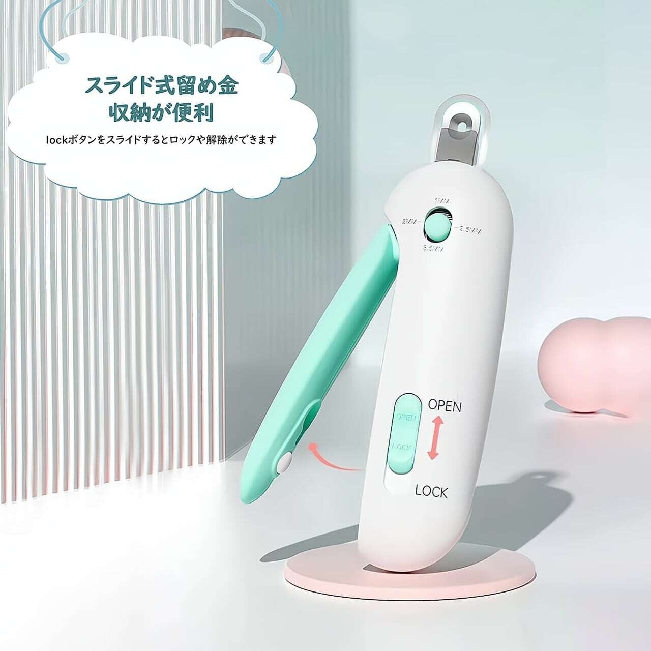 爪切りは収納可能なデザインになっており、使わない時はコンパクトにまとめておけます。持ち運びにも便利で、旅行やお出かけ先でもお手入れが簡単に行えます。いつでも愛猫の爪を整えてあげることができます。