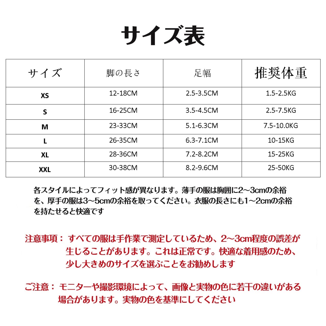 ■ サイズ:お客様のペットの体型に合わせて選べるサイズ展開 ( XS、S、M、L、XL、XXL )