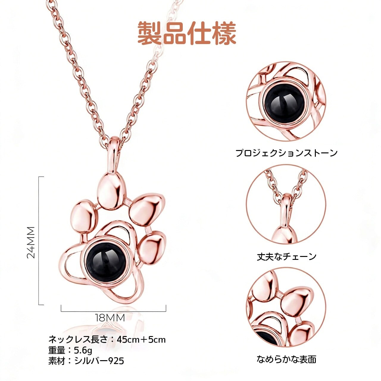 ■ 品名:写真投影ネックレス|手形&かわいい動物|925シルバー