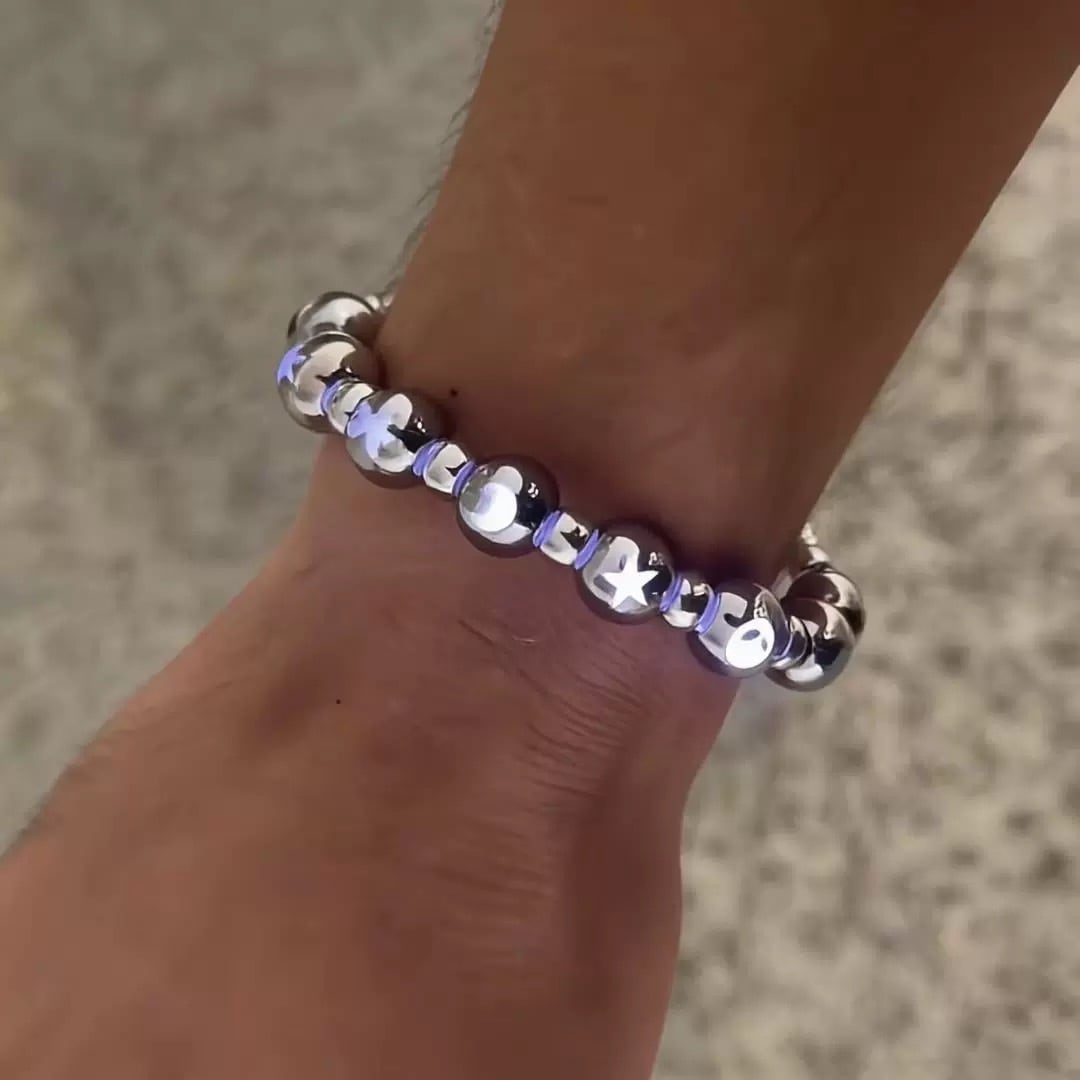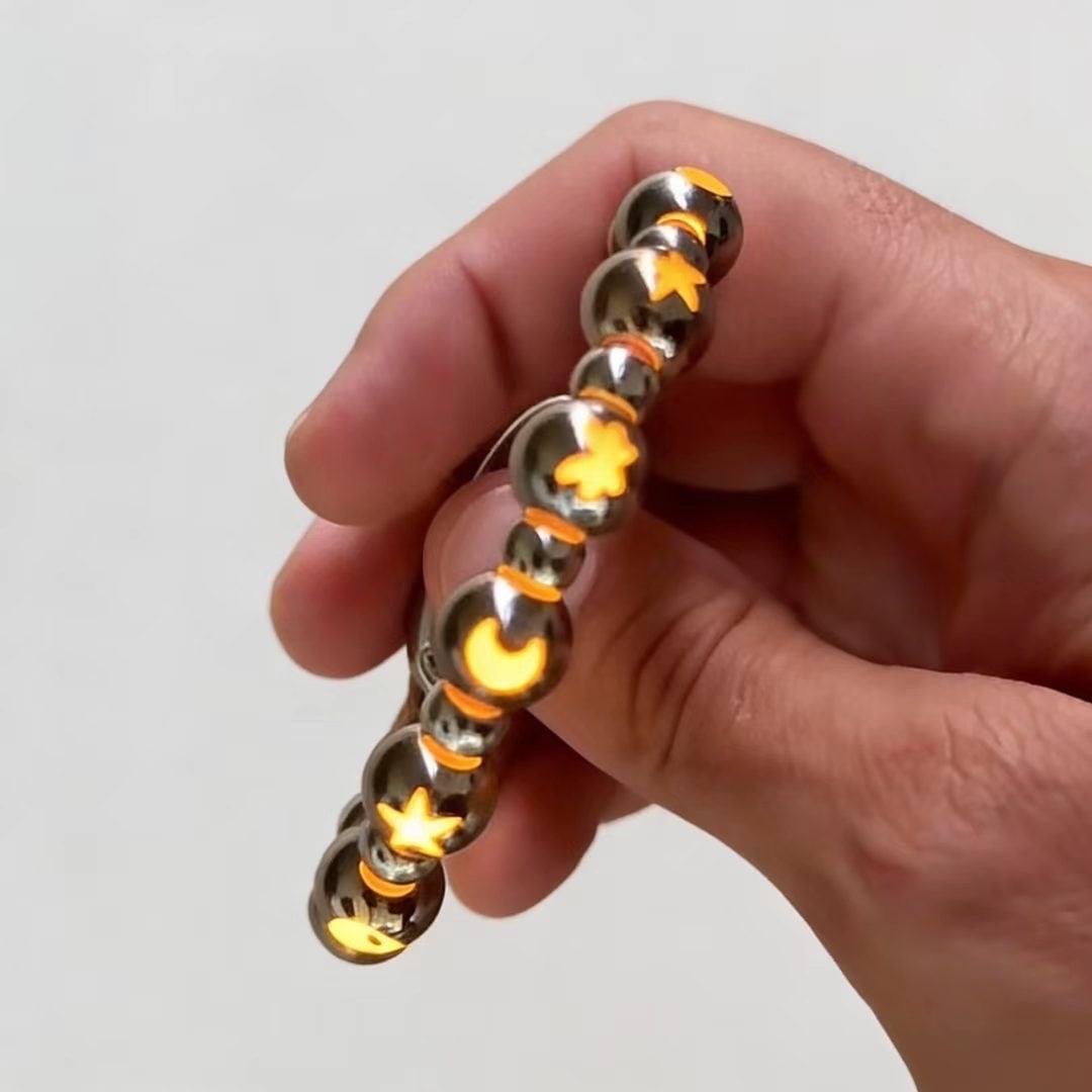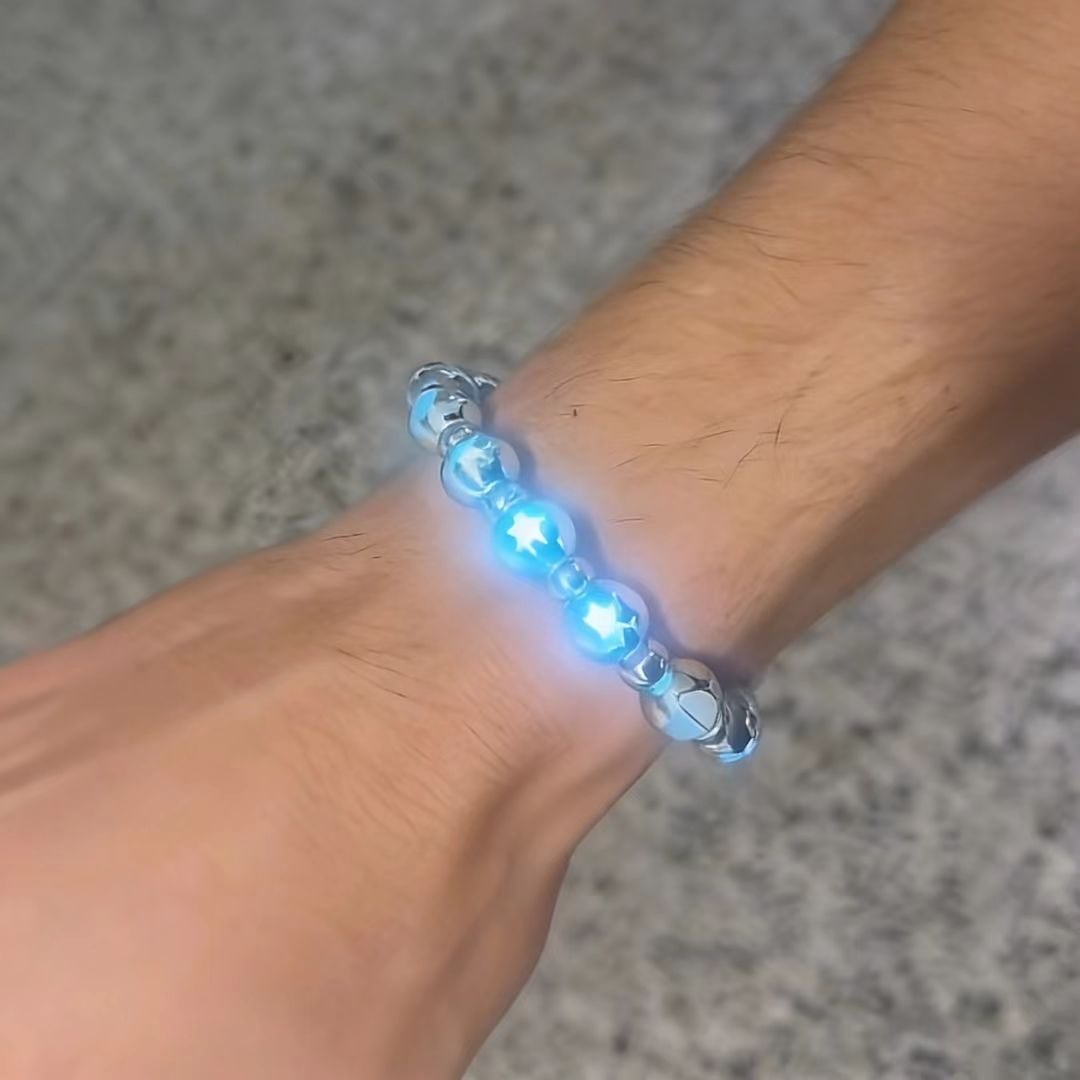 夜のお出かけやパーティーにぴったりな発光機能を備えたブレスレットです。ユニークなオリジナルデザインで、見る人を惹きつけます!