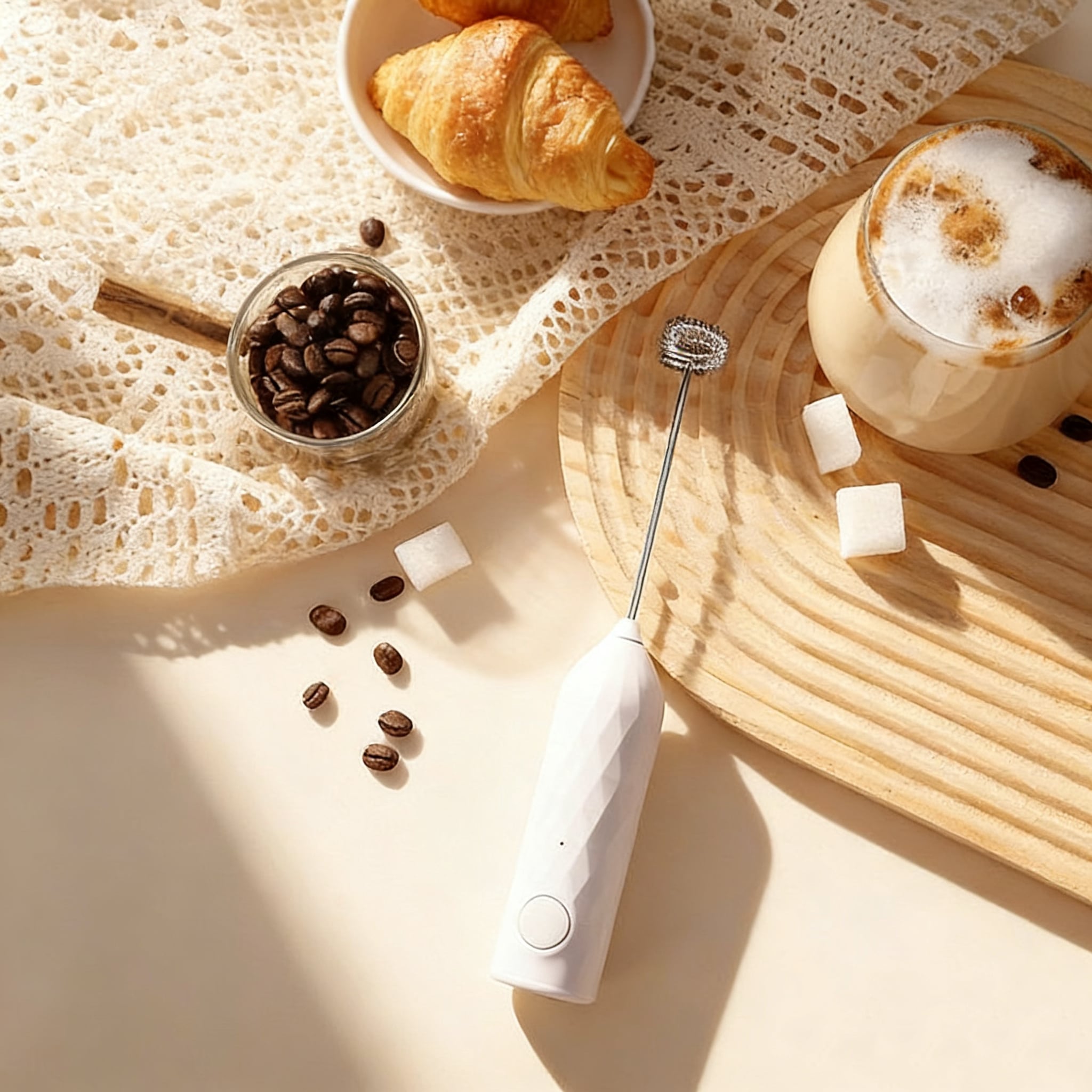 この泡立て器は、コーヒーやメレンゲ作りに最適な電動タイプ。充電式なので、コードレスで自由に動かせ、ストレスなくお好きな場所で使用できます。手軽にふんわりとした泡を作り出し、料理やスイーツをより一層楽しむことができます!