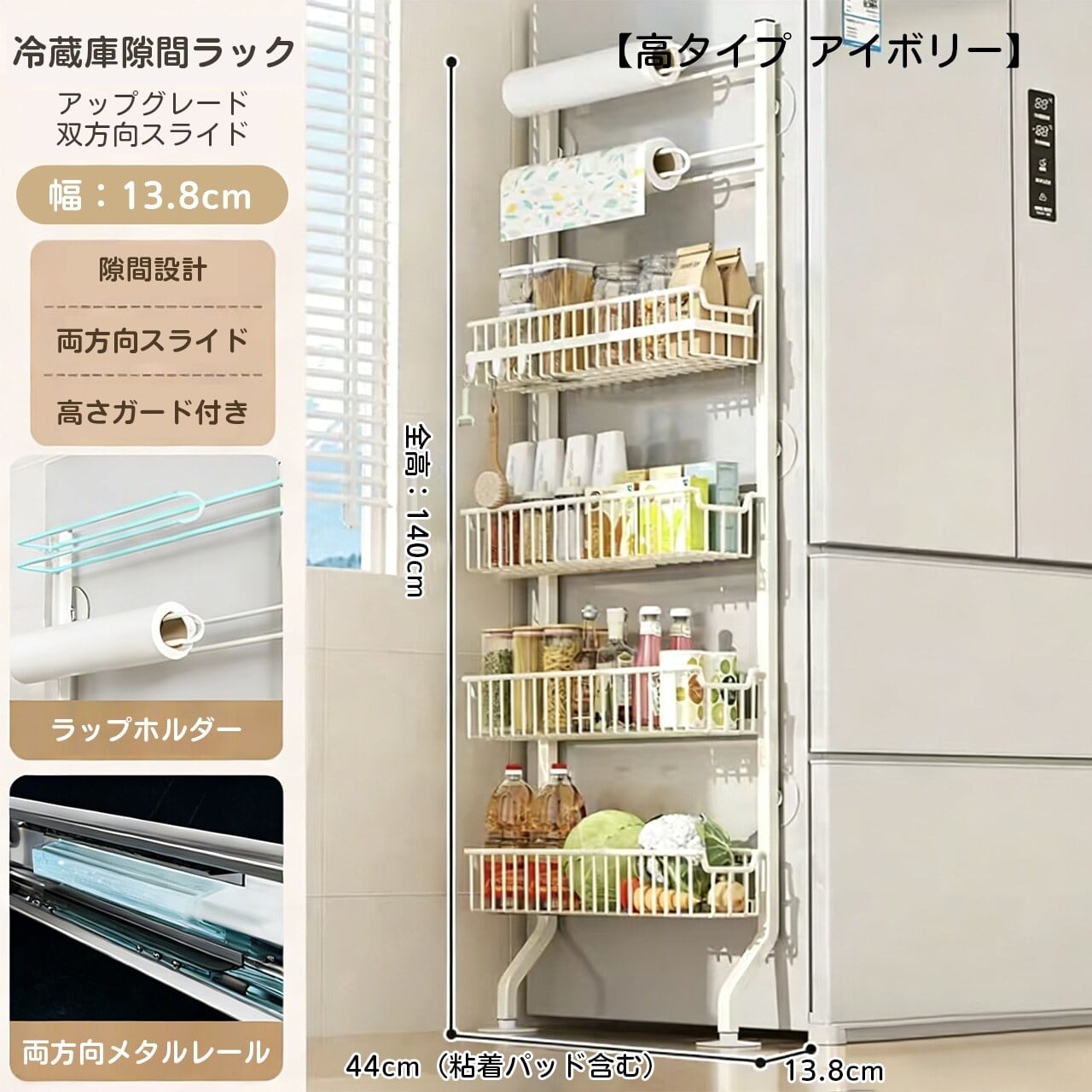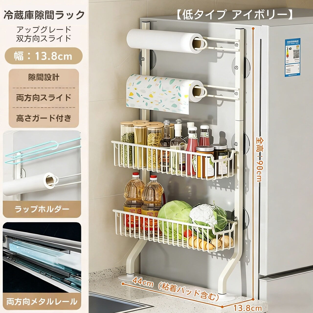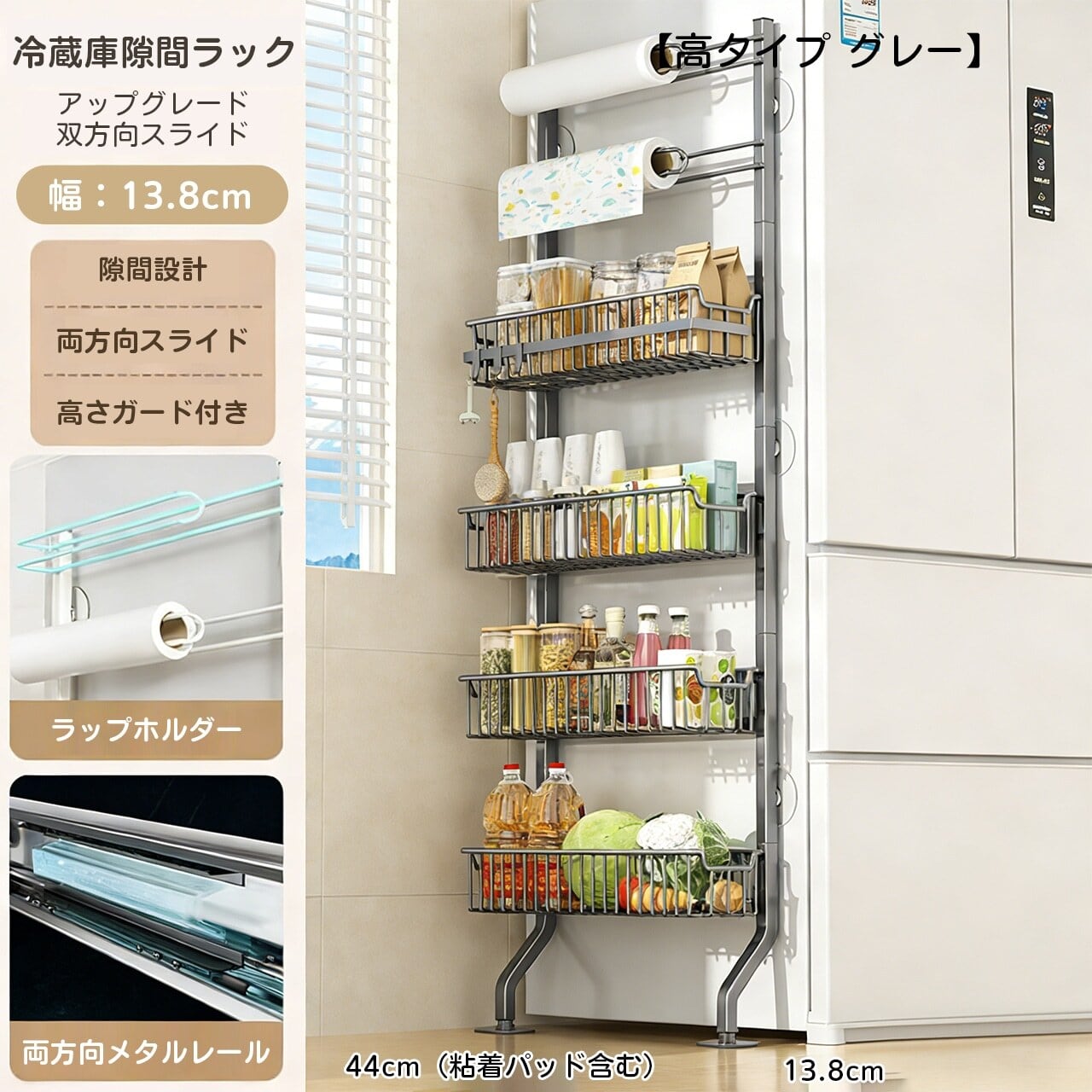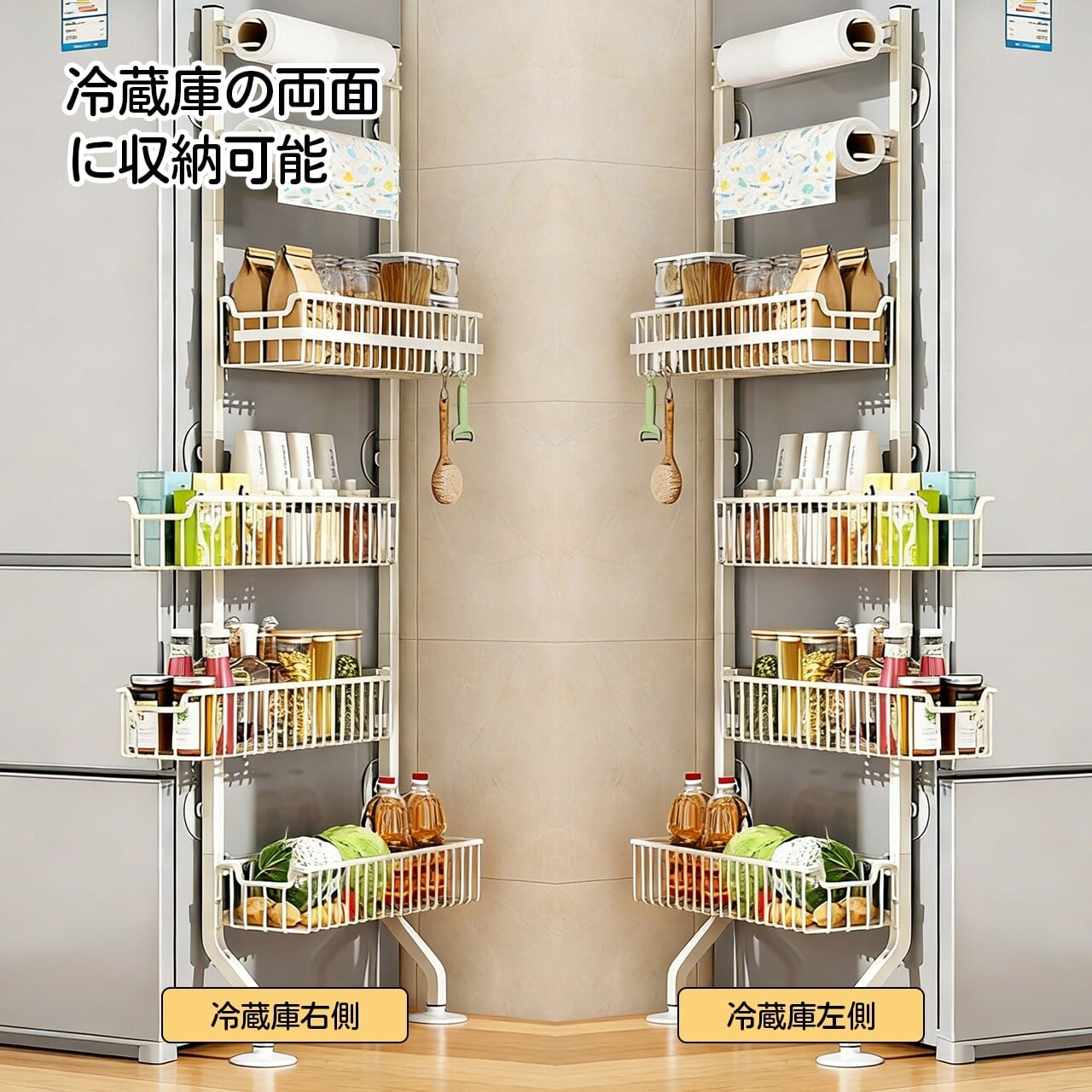 冷蔵庫横スリム収納ラック|キッチンを美しく整理整頓する必携アイテム!