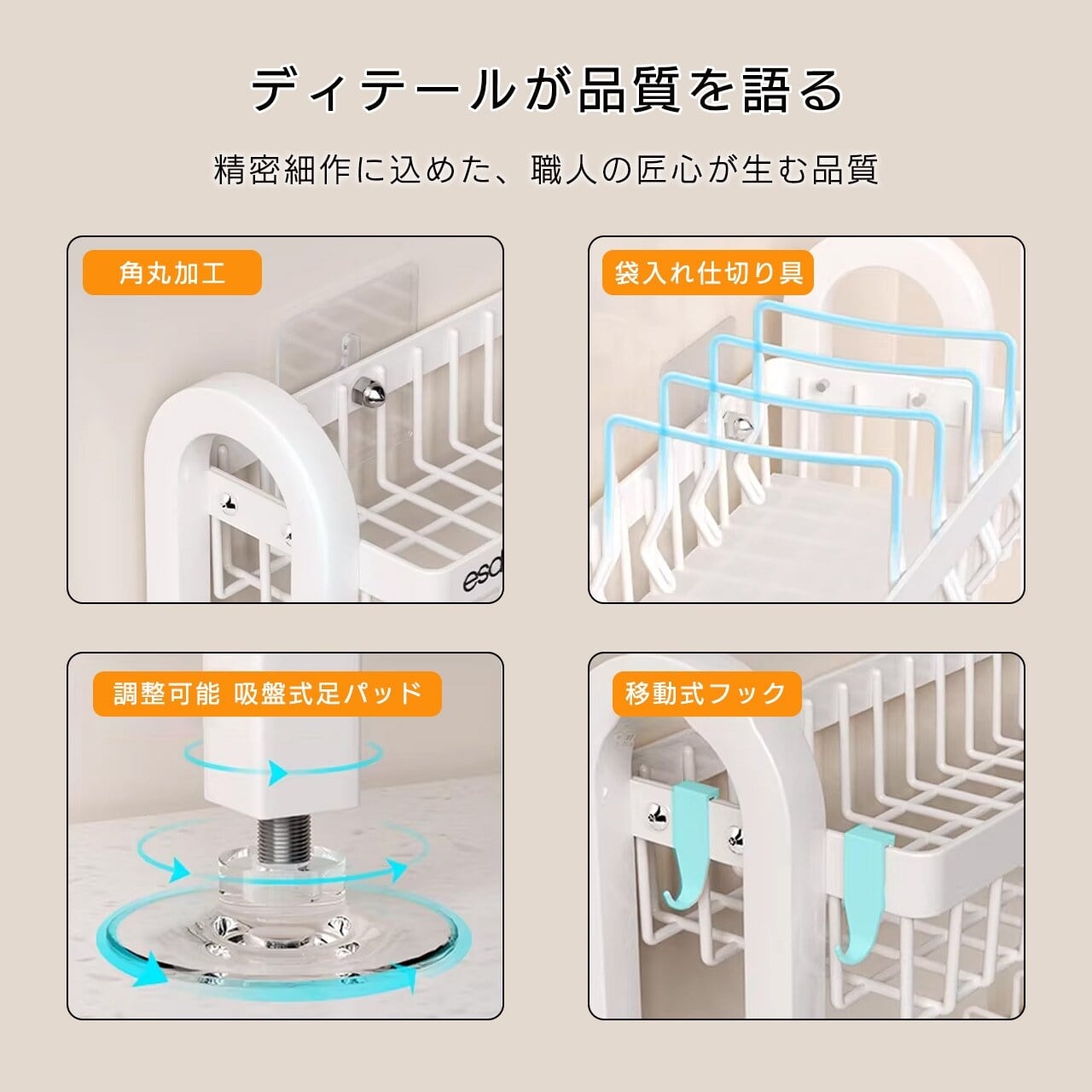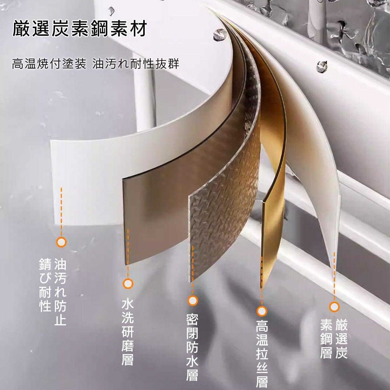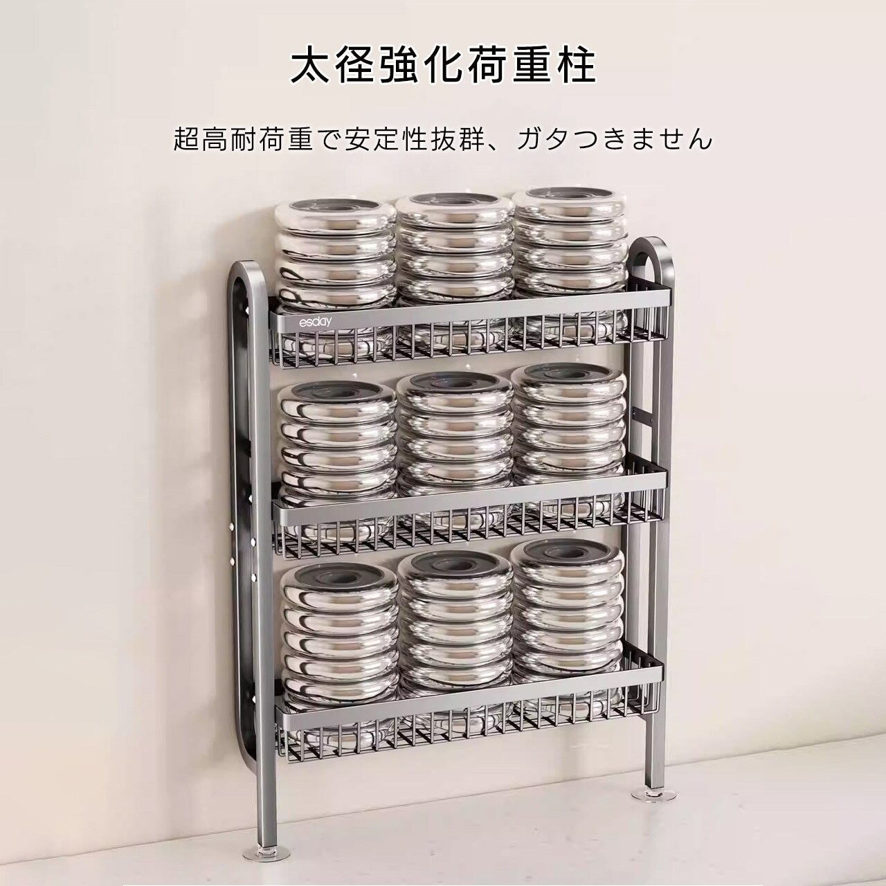 取り付け簡単、堅牢な素材で厨房の湿気環境にも耐え、コンロ周りをスッキリ整頓する、家庭用キッチン収納の必須アイテムです。