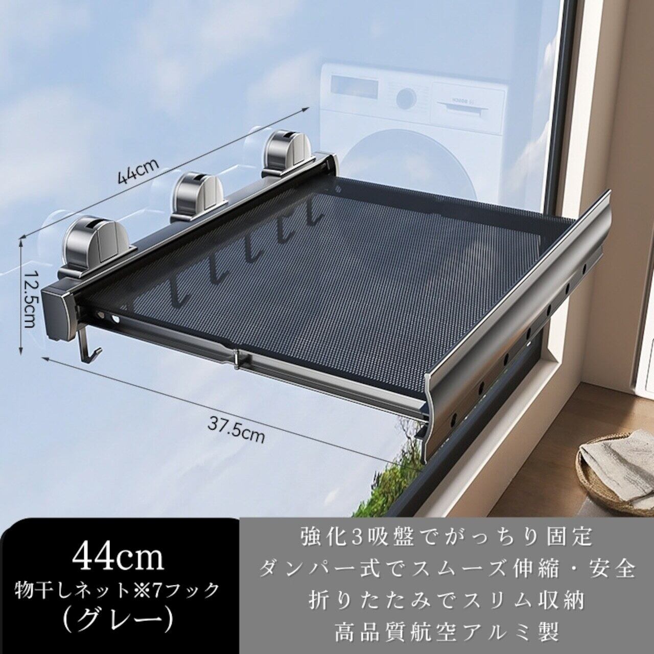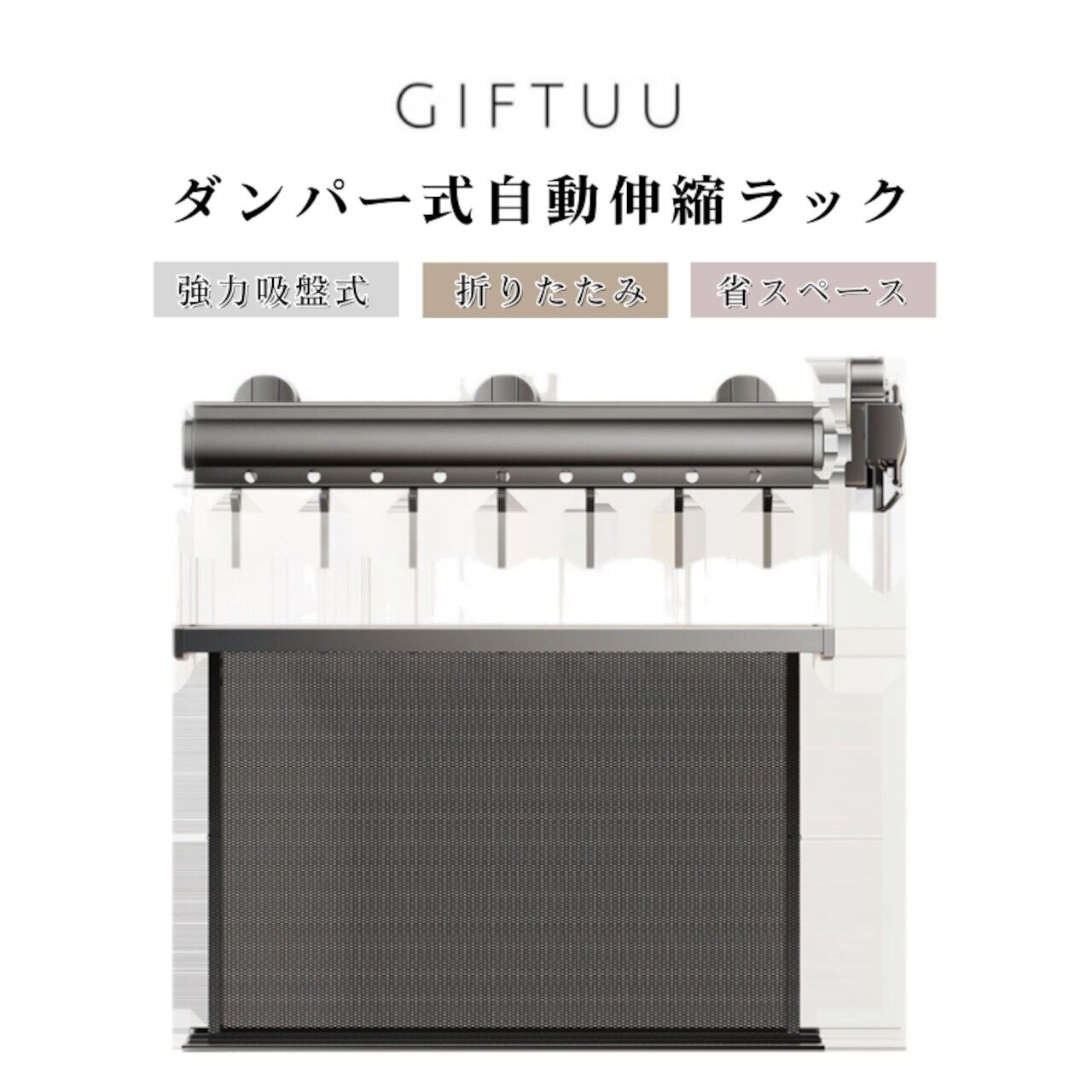 特長:ダンパー式スムーズ伸縮、折りたたみ収納可能、吸盤水洗い再生可能