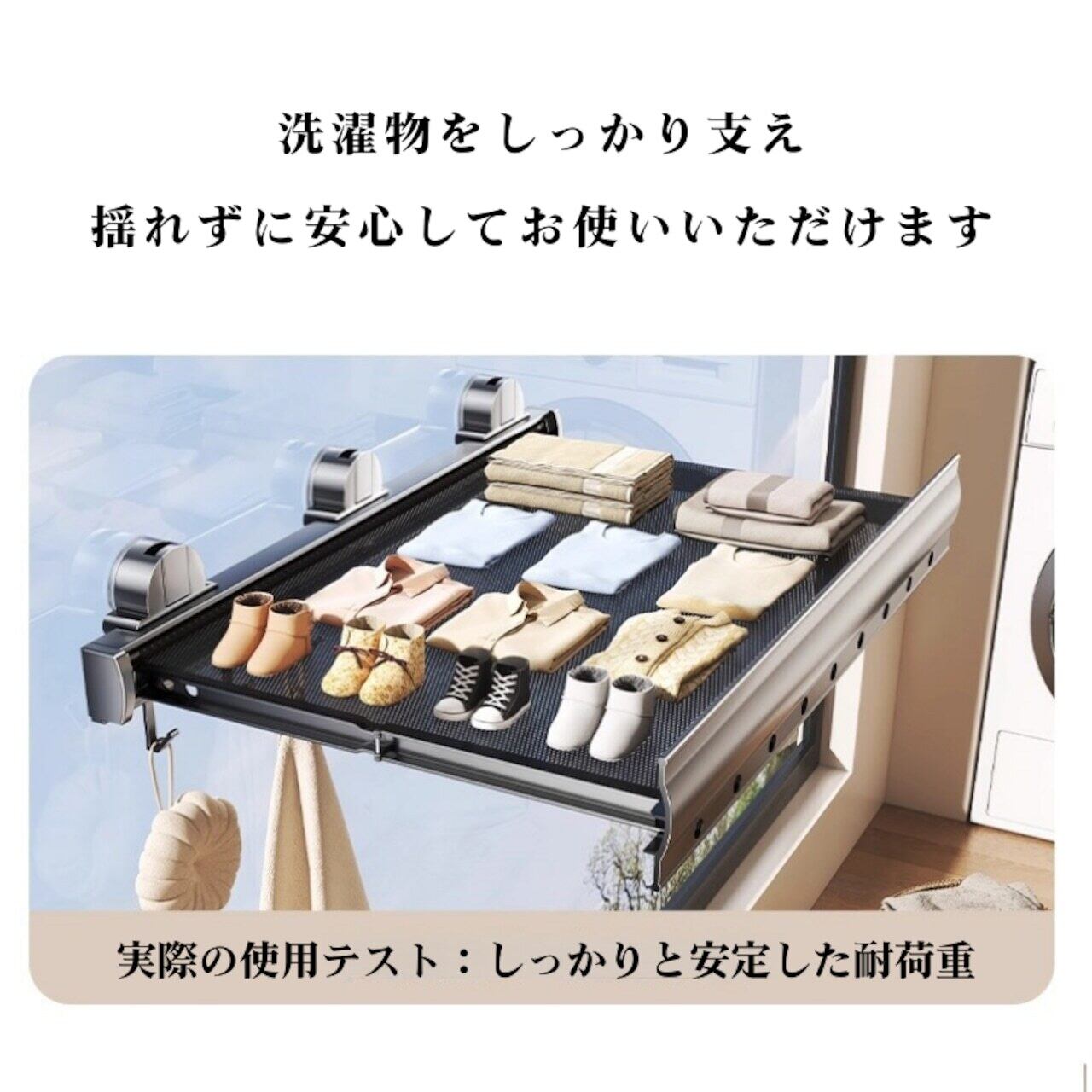 耐荷重テスト済み:日常の洗濯物をしっかりサポート