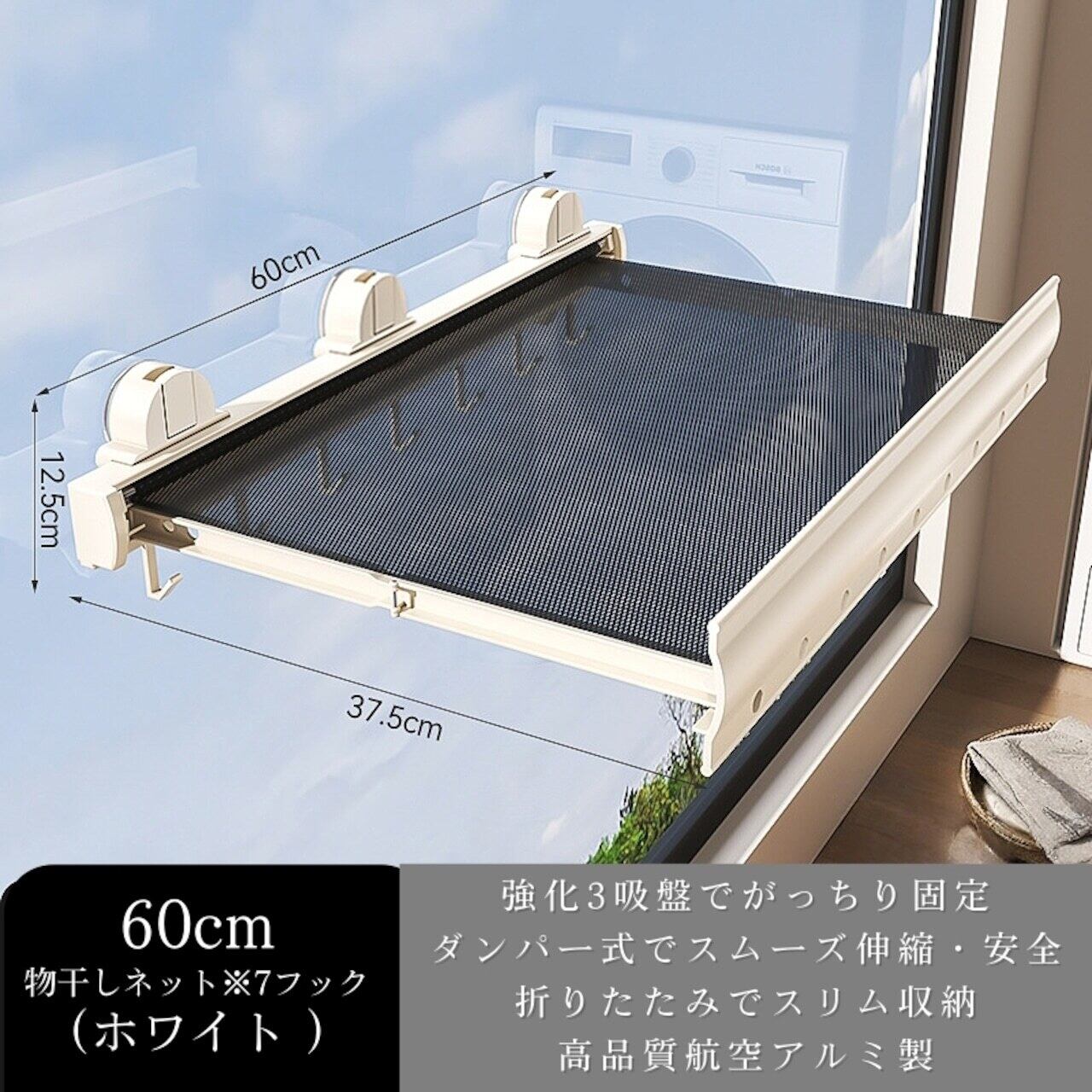 従来の1点吸着ではなく、三角形に配置された3つの強力吸盤が、加重を分散させてがっちりホールド。洗濯物をたくさん干しても、ズレたり落下したりする心配が大幅に軽減されます。