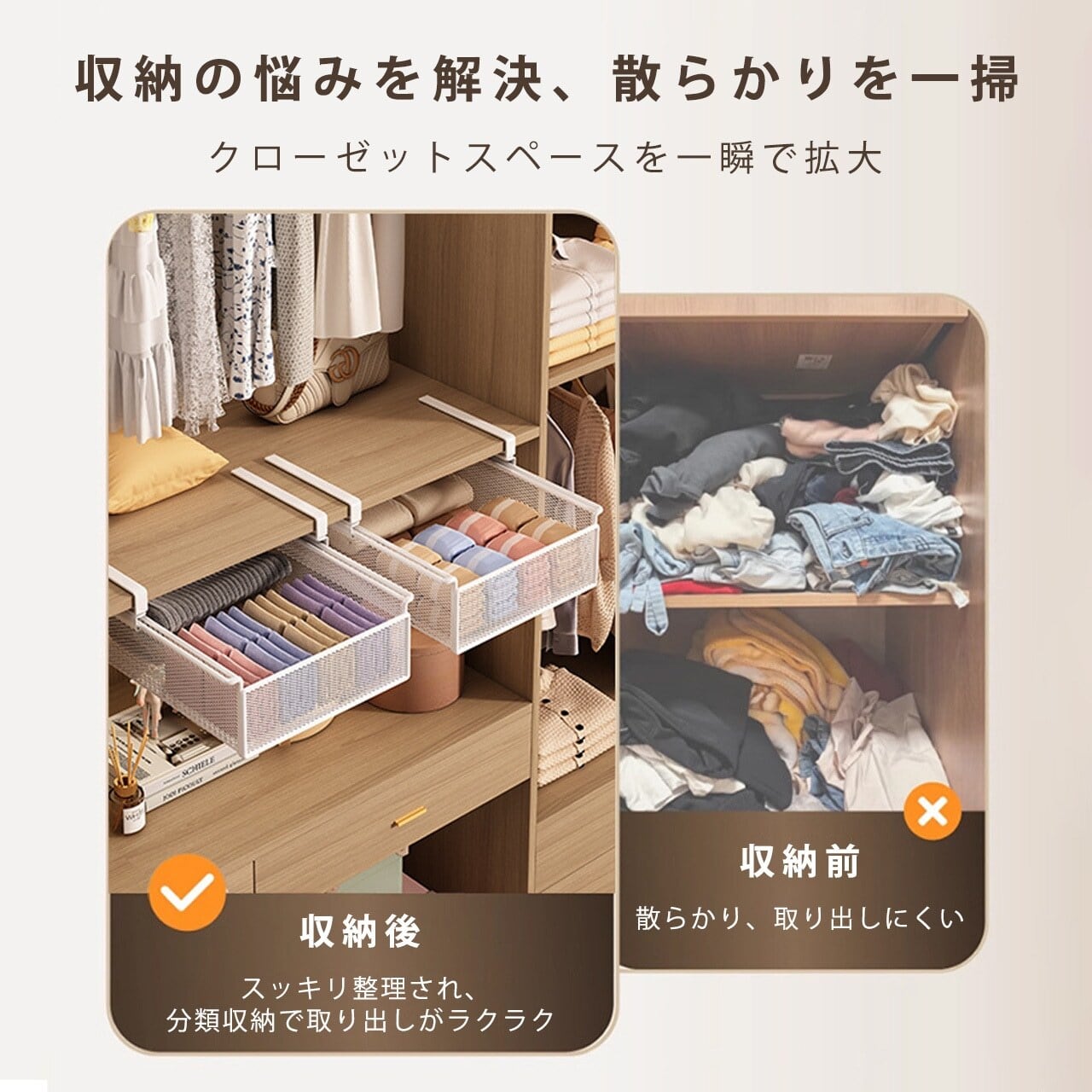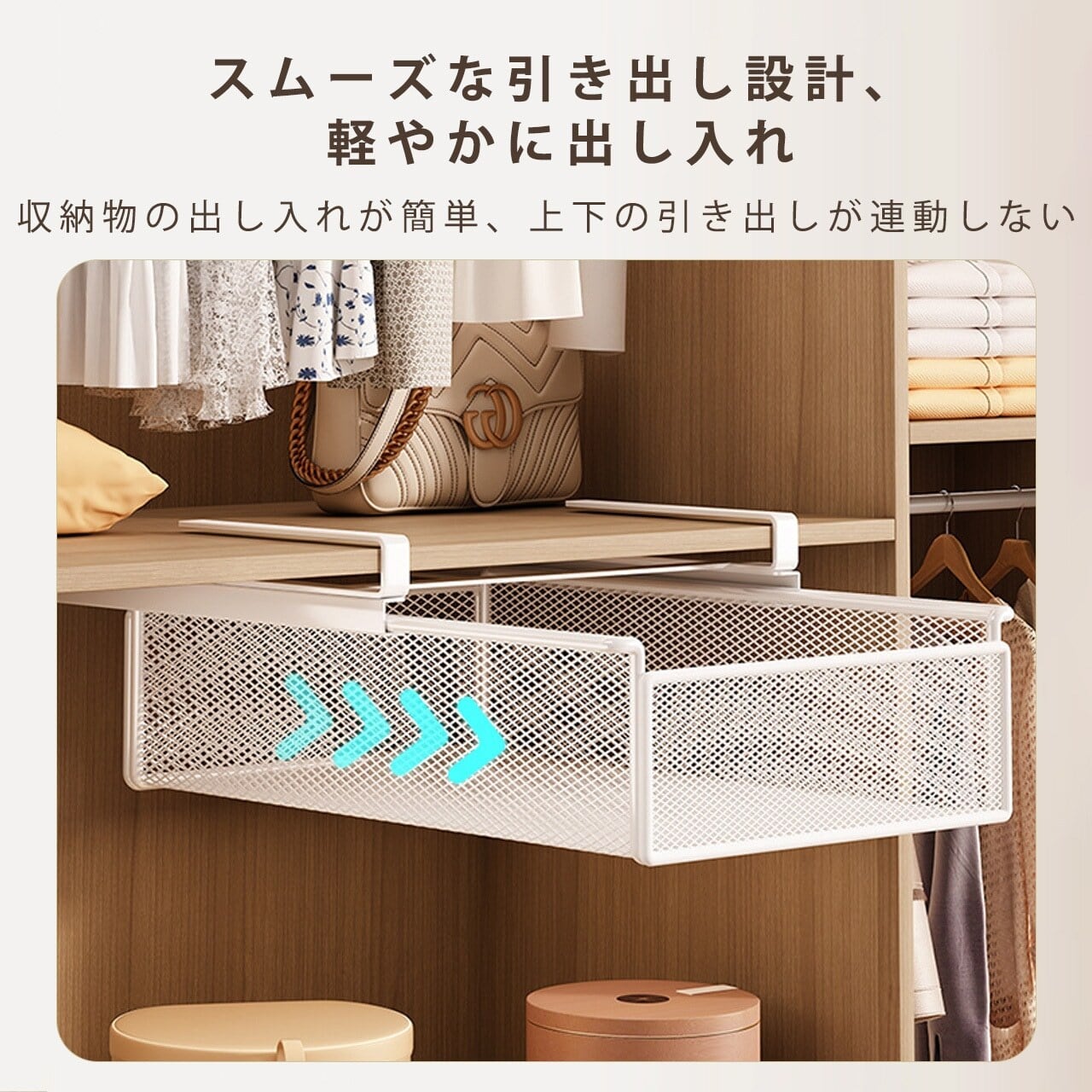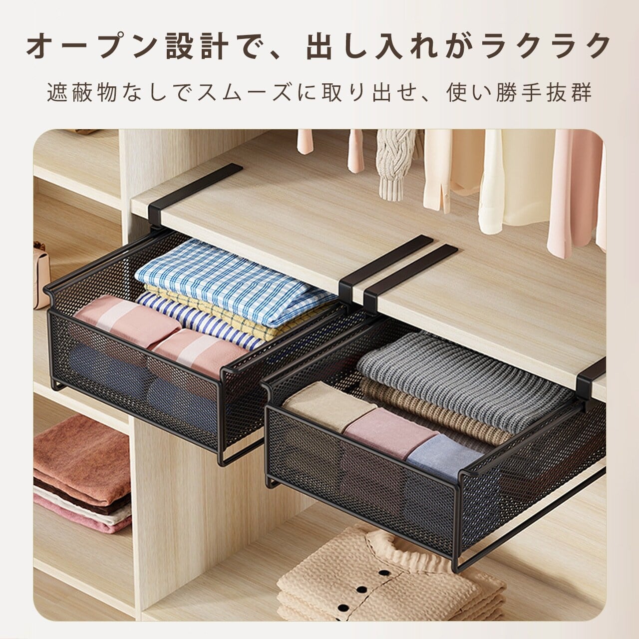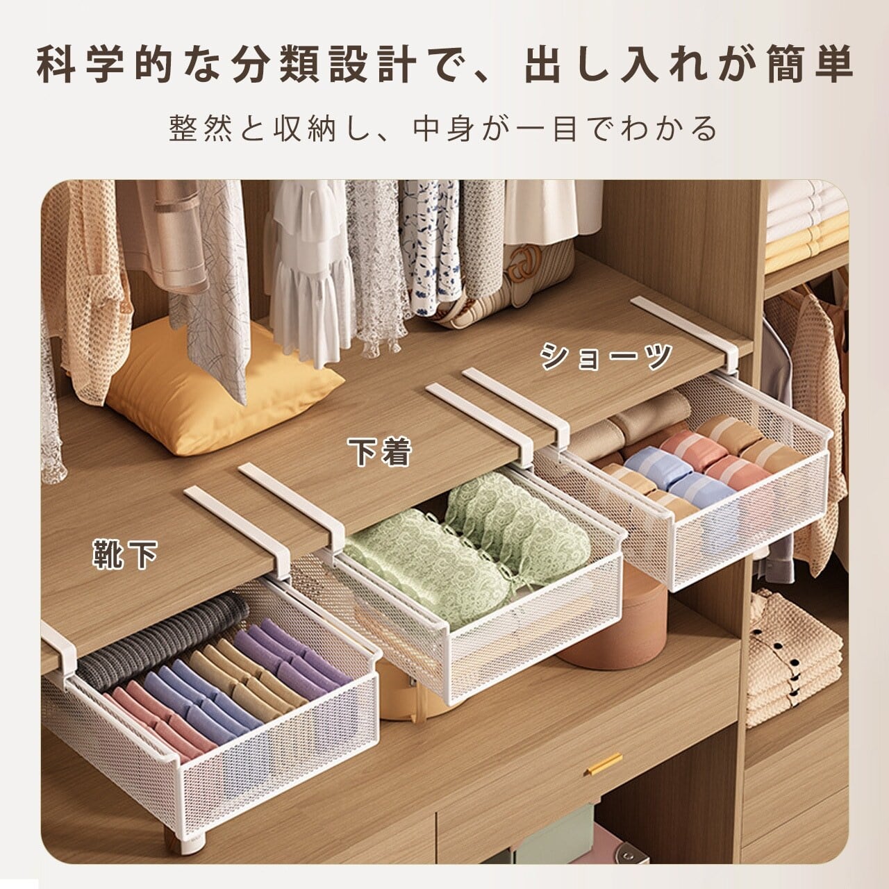 L.292.クローゼット収納ボックス|靴下・下着整理用、引き出し式ラック