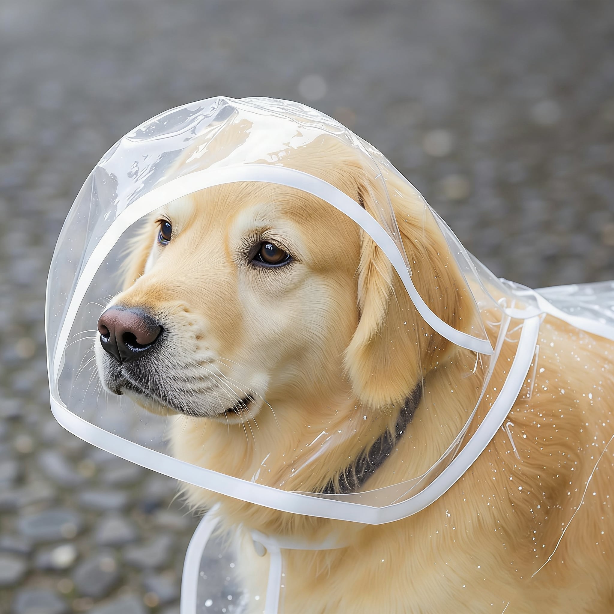 透明フードがついているため、雨の日でも視界が遮られず、安全にお散歩が可能です。しっかり体を守るデザインで、雨から愛犬を守ります!