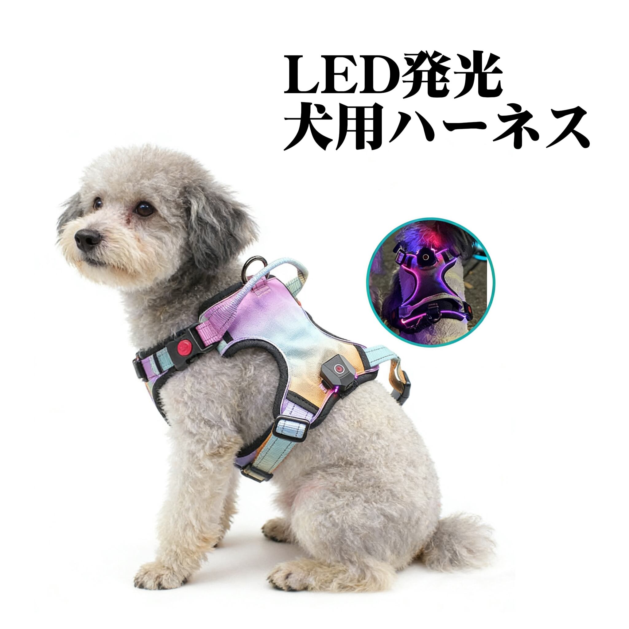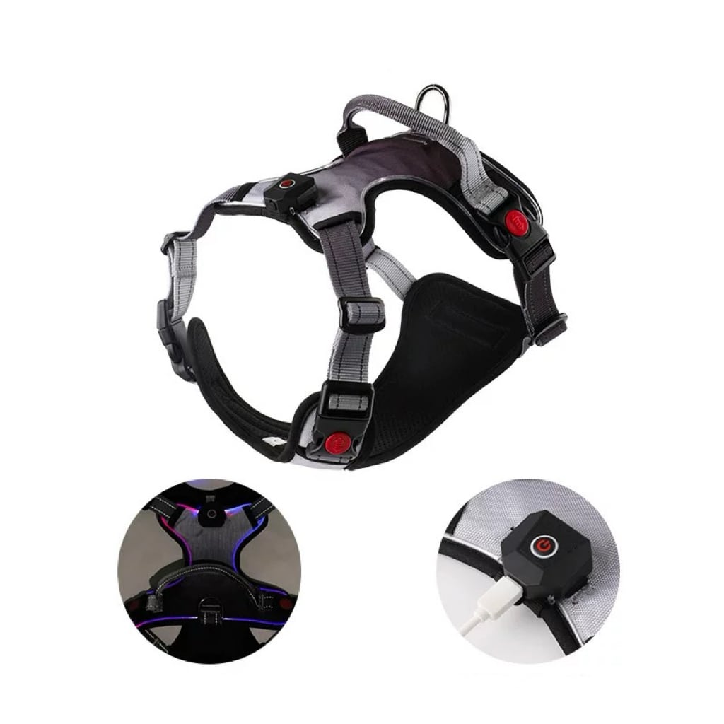 197.LED発光 犬用ハーネス 夜間お散歩安心 点灯モード3段階調整
