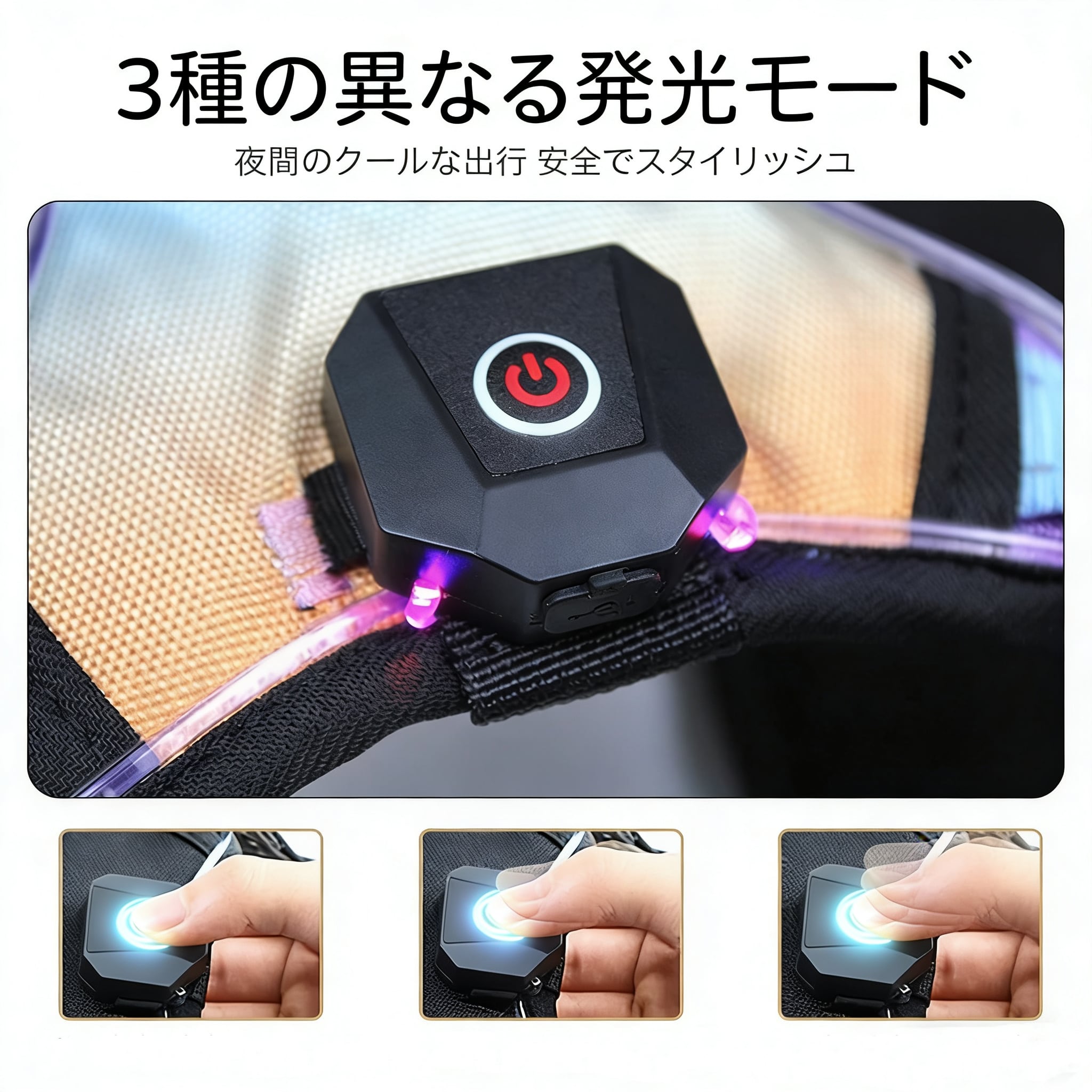 夜間のお散歩も安心!犬用LED発光ハーネスは、特に愛犬の安全を考えた設計で、散歩がより楽しくなるアイテムです。点灯モードは3段階調整可能で、状況に応じて明るさを変えることができます。