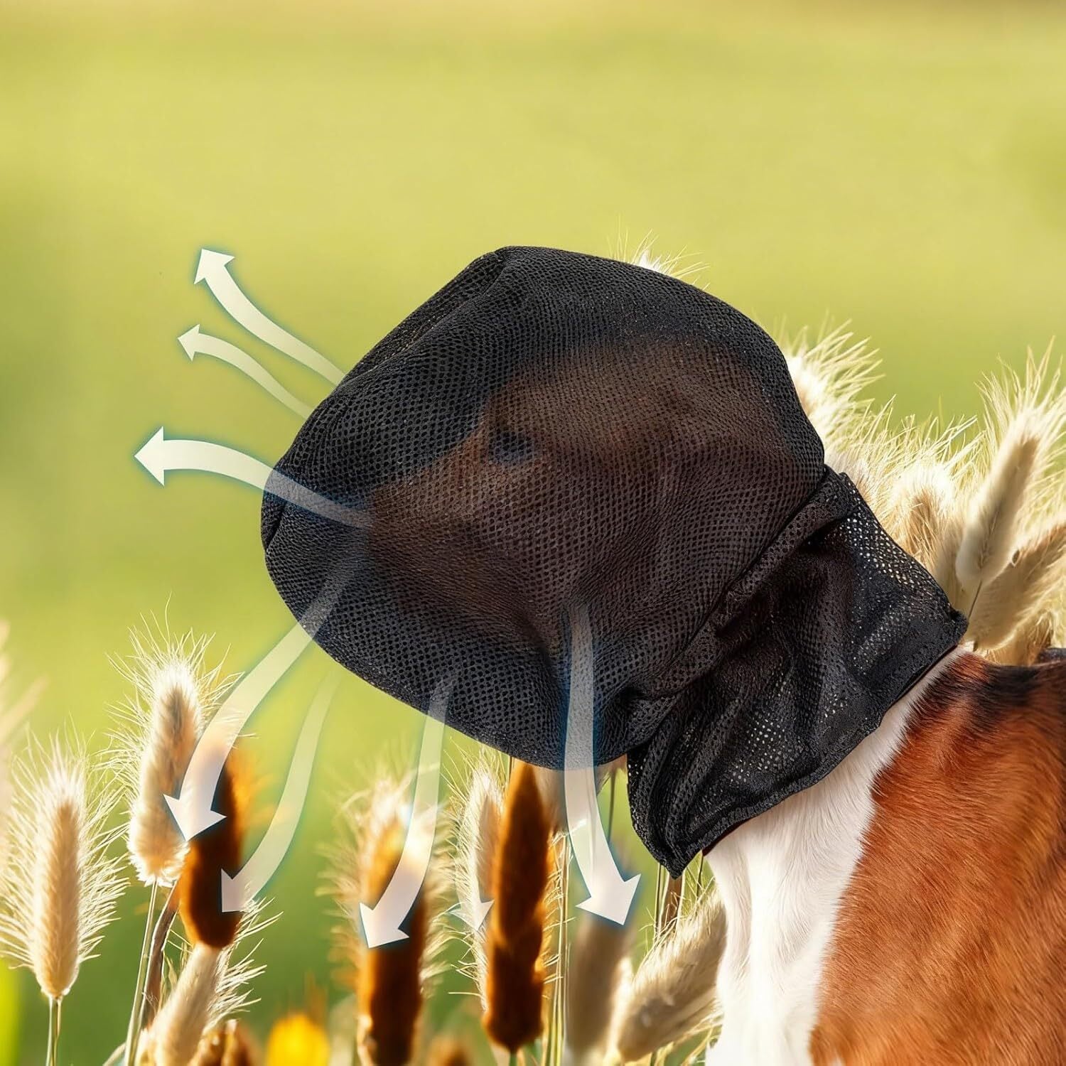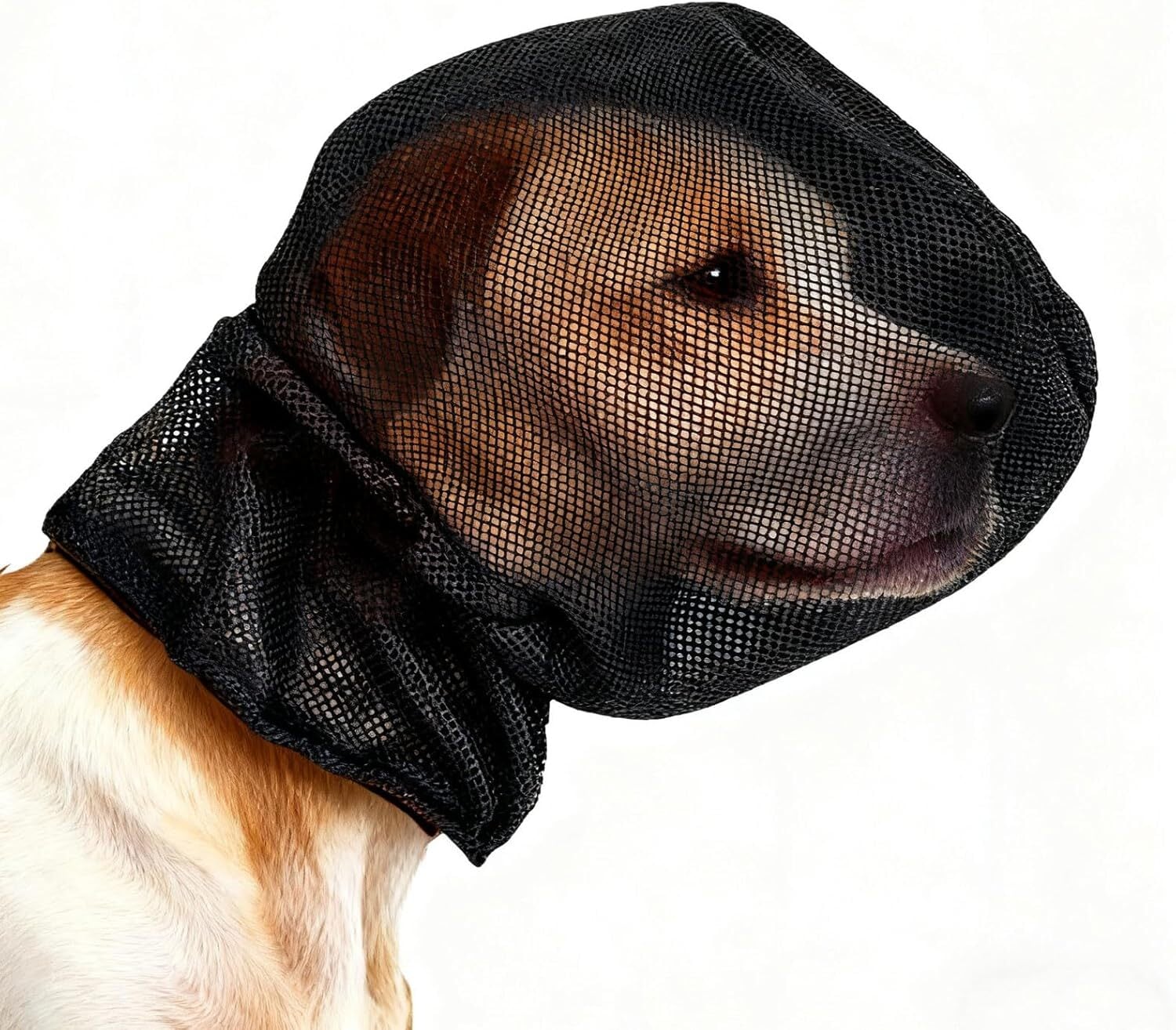234.犬用ベールマスク 拾い食い防止 誤飲対策 黒色メッシュ生地 、引き紐調整式デザイン